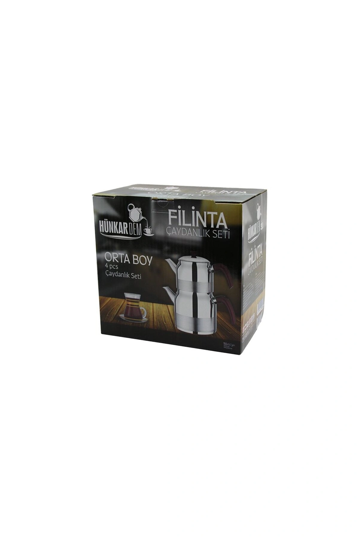 FİLİNTA ORTA BOY ÇELİK ÇAYDANLIK SETİ ÇİFT KAPAKLI RENKLİ BAKALİT KULP ÜST DEMLİK: 1.25LT - ALT SULUK: 2.25LT KENDİNDEN SÜZGEÇLİ