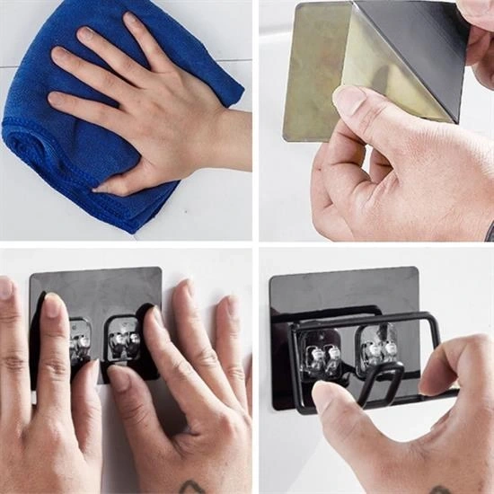 Yapışkanlı Tutma Sistemi: Bu fön makinesi tutucu, güçlü ve dayanıklı yapışkanlı sistemi sayesinde kolayca duvar veya düz yüzeylere monte edilebilir. Delme veya vida kullanma ihtiyacı olmadan pratik bir şekilde kurulum yapabilirsiniz.