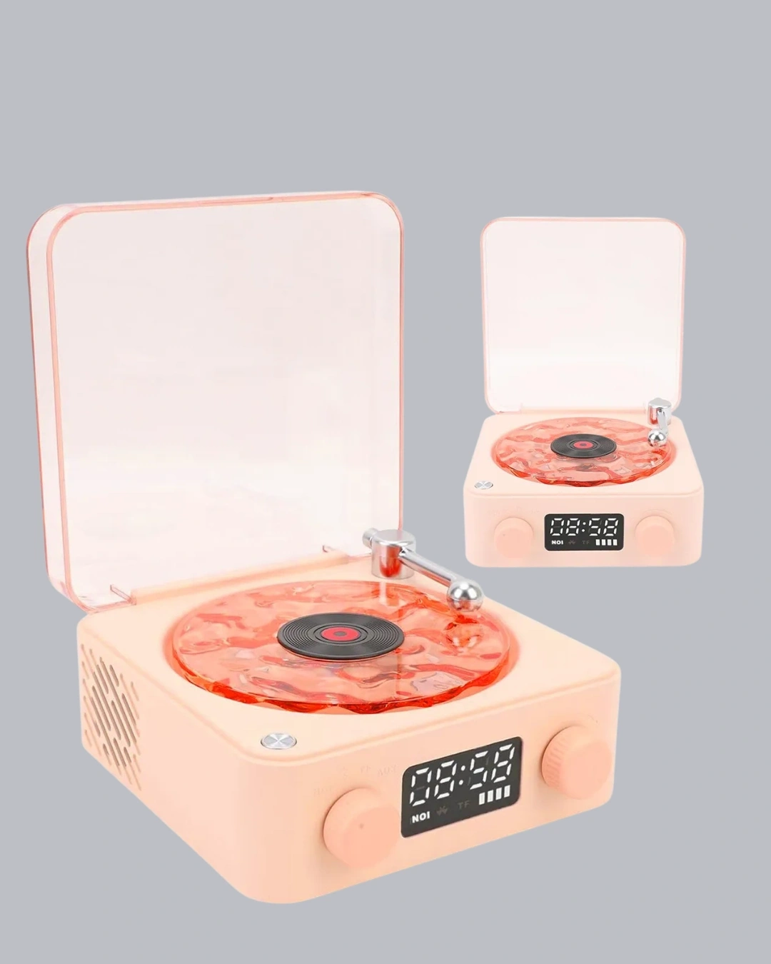 Bu yenilikçi 3-ü-1 çok fonksiyonlu cihaz, modern yaşam alanlarında hem estetik hem pratik kullanım arayan kullanıcılar için özel olarak tasarlanmıştır. Gece lambası, stereo Bluetooth hoparlör ve dijital saat ekranı özelliklerini tek bir zarif gövdede birleştiren ürün, tek cihazla birden fazla ihtiyacı karşılamak isteyen herkes için ideal bir çözümdür. Şeffaf gövdesi içerisinde yer alan su dalgası efektli LED ışık, odada yumuşak ve huzur verici bir atmosfer oluşturur. Bu ambiyans ışığı özellikle uykuya hazırlanma, meditasyon, kitap okuma veya dinlenme zamanlarında rahatlatıcı bir etki sağlar. Dekoratif yapısı sayesinde hem yetişkin hem genç odalarında şık bir görünüm sunar.Cihazın güçlü stereo Bluetooth hoparlörü, yüksek ses performansı sayesinde derin basları ve net tizleri dengeli bir şekilde sunar. Telefon, tablet ve bilgisayar gibi tüm Bluetooth destekli cihazlarla hızlı bağlantı kurar ve kesintisiz müzik deneyimi sağlar. Müzik dinlerken, film izlerken veya arka planda lo-fi, white noise ya da meditasyon sesleri açarken herhangi bir gecikme veya bağlantı sorunu yaşanmaz. Hoparlörün temiz ve güçlü ses çıkışı, kompakt tasarımına rağmen oldukça etkileyici bir performans sunar.Üzerinde yer alan dijital saat ekranı, zaman yönetimini kolaylaştırırken pil seviyesini de kontrol etmenizi sağlar. Bu sayede cihazın ne kadar süre daha kullanılabileceğini bilerek planlama yapabilir, özellikle başucu kullanımında tek bir ürünle hem ışık hem saat hem de hoparlör ihtiyacınızı karşılayabilirsiniz. LED ekran parlaklığı net ve okunaklı olduğu için hem gece hem gündüz rahatça görüntülenebilir.Vintage plak çalarlardan ilham alınarak tasarlanan modern gövdesi, ürüne nostaljik ama şık bir karakter kazandırır. Şeffaf yüzeyindeki ışık efektleri ve minimalist formu, oturma odası, yatak odası, ofis veya çalışma masası gibi alanlara dekoratif bir değer katar. Hafif ve taşınabilir yapısı sayesinde istediğiniz her yere kolayca götürebilir, tek cihazla çok yönlü kullanım avantajı elde edebilirsiniz.Hem hediye olarak hem kişisel kullanım için harika bir seçenek olan bu 3-ü-1 hoparlör; ambiyans ışığı, yüksek kaliteli müzik deneyimi ve dijital saat fonksiyonlarını bir arada sunarak evinizin vazgeçilmez parçalarından biri olmaya adaydır.