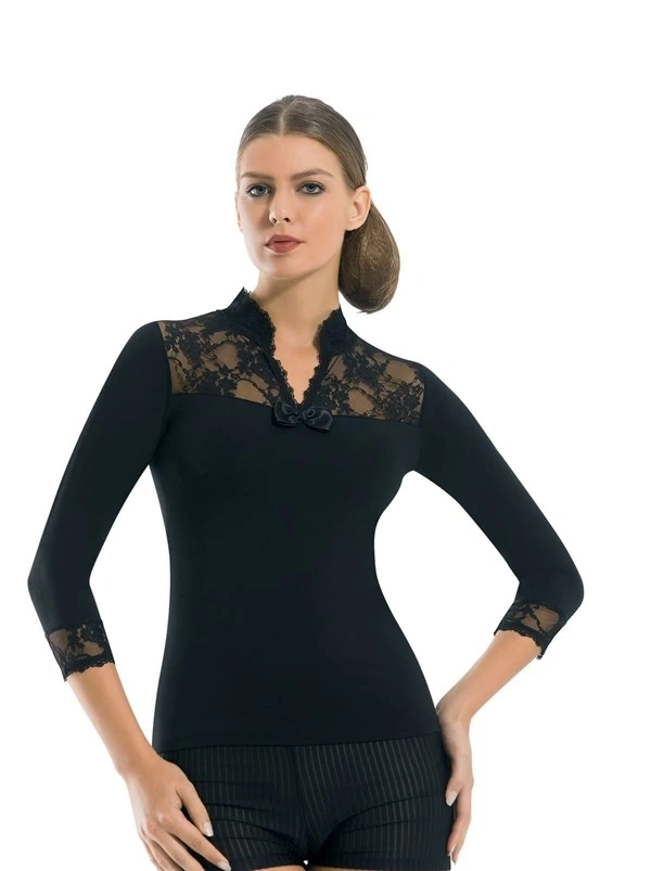 Bayan Kısa Kol Dantelli Elastane 8015
