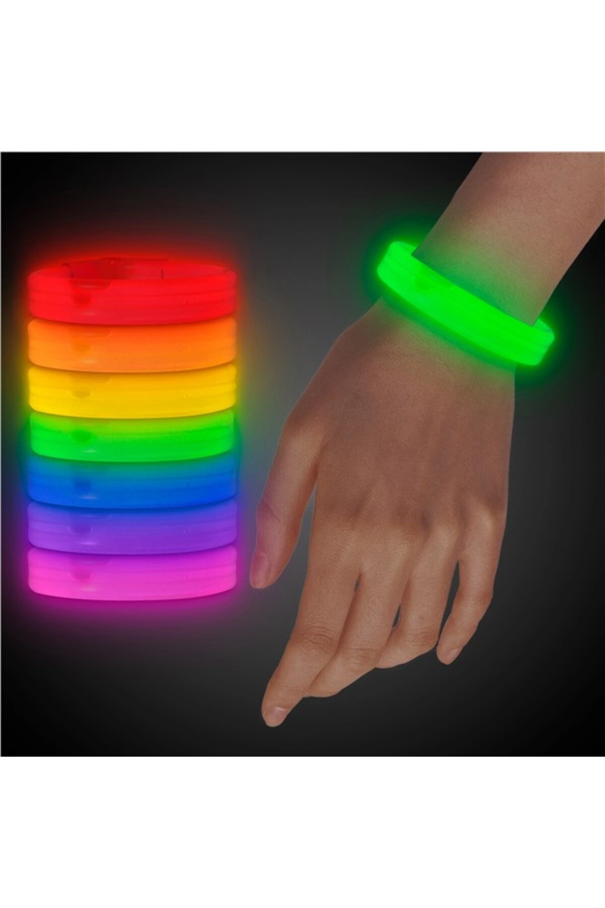 Karanlıkta Parlayan Glow Ekstra Kalın Bileklik Pakette 6 Adet Bulunmaktadır Pakette 6 Farklı Renk Bulunmaktadır Ürün standart ince bilekliklerden farklıdır Bileklik eni 2 cm'dir.; Oldukça kuvvetli bir yanma ışığı bulunmaktadır