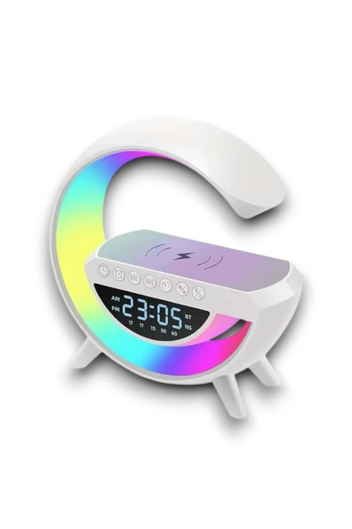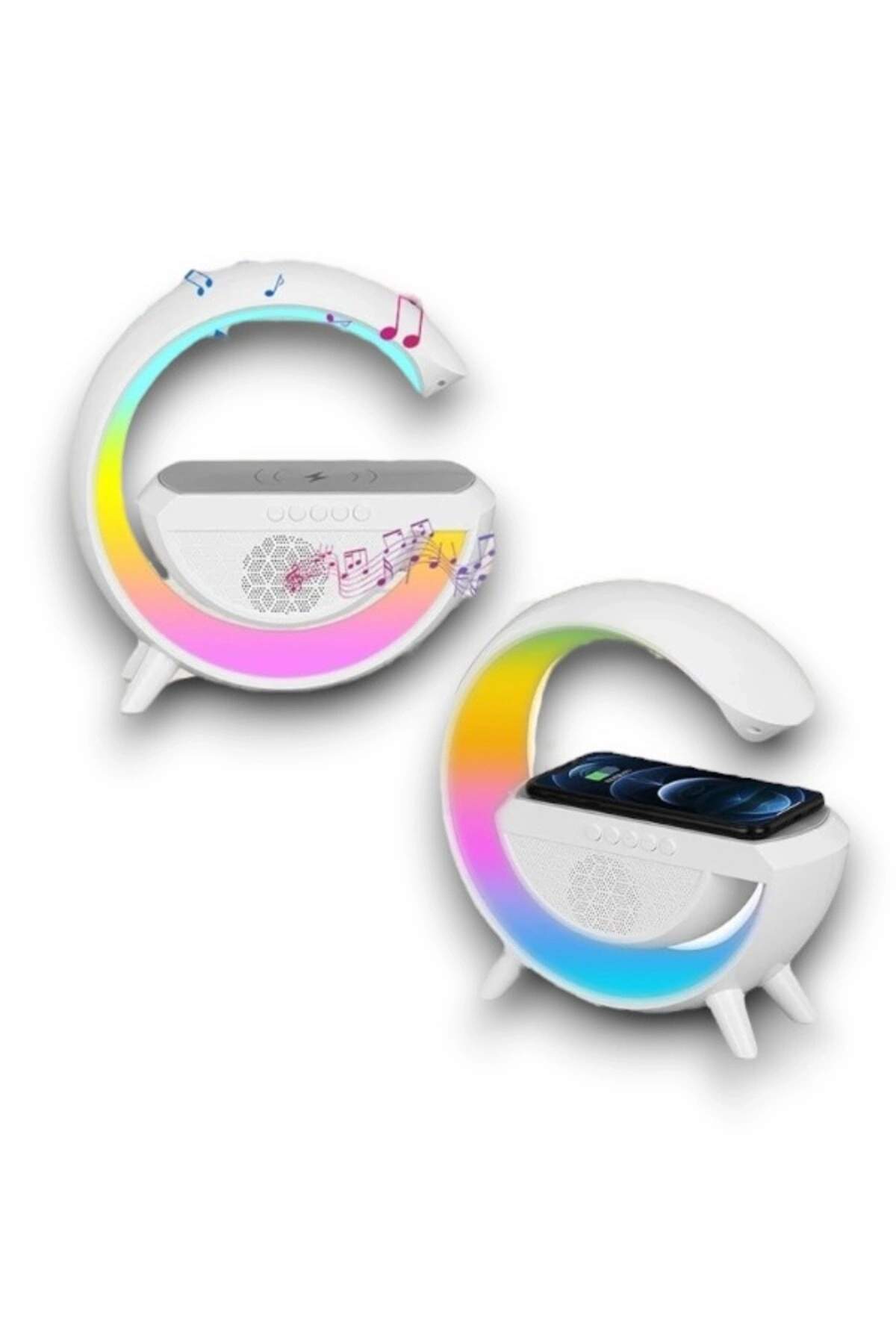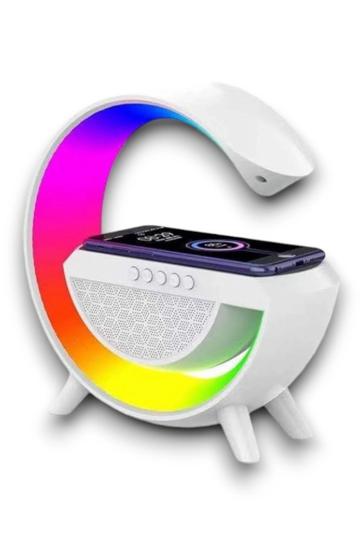 Kablosuz Şarj Özellikli Bluetooth Hoparlör Gece Lambası'nın rahatlığının tadını çıkarın Bu hepsi bir arada cihaz, size kristal netliğinde bir ses ve mükemmel bir ortam sağlamak için tasarlanmıştır.; Dahili NFC şarjı, kablosuz şarj özelliği, ayarlanabilir parlaklık ayarları ve sezgisel çalar saati ile bu hoparlörün evinize rahatlık ve stil katacağından emin olabilirsiniz.; ahili Bluetooth 5.0 Hoparlör, müzik akışı için telefonunuza veya başka bir cihaza kolayca bağlanın.; Kablosuz şarj teknolojisi ve NFC Şarj ile telefonunuzu ve hoparlörü kabloları takmadan şarj etmenizi sağlar.; LED gece lambası özelliği sıcak beyazdan RGB ışıklara ayarlanabilir.; FM radyo ve birçok farklı fonksiyonu ile başucu arkadaşı olarak kullanım için mükemmeldir.; FM radyo ve birçok farklı fonksiyonu ile başucu arkadaşı olarak kullanım için mükemmeldir.; Boştayken düşük güç tüketimi, enerji tasarruflu ve çevre dostu tasarım.; Uzun ömürlü dayanıklılık için üstün kaliteli ABS malzeme ve üstün ses kalitesi.; Akıllı telefonlar ve tabletler de dahil olmak üzere çoğu cihazla uyumlu çoklu ses girişleri ve çıkışları.; Kompakt boyutu ve hafif tasarımı, taşınabilir ve taşınması kolay olmasını sağlar.; Sürükleyici bir dinleme deneyimi için derin bas ve kristal netliğinde tizler içeren stereo ses efekti.; Bluetooth ile kablosuz bağlanır ve 10 saate kadar oynatma süresi sağlar.; Daha fazla rahatlık için eller serbest aramayı destekler.; Akıllı Telefon / Tablet Uygulaması, Ekolayzır ayarları, Uyku Zamanlayıcısı vb.; gibi daha fazla özellik için kullanılabilir.; Yapısıyla güvenli dış mekan kullanımı sunar.; Farklı renk geçişleriyle odanızda muhteşem bir görünüme ulaşabilirsiniz.