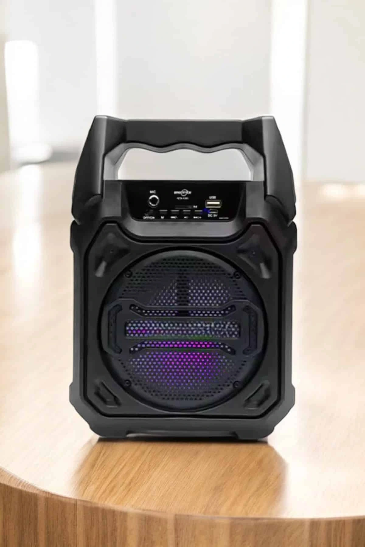 1283 Kablosuz Bluetooth Hoparlör, 6.5 inçlik güçlü woofer boyutuyla etkileyici bir ses performansı sunar. 15W çıkış gücü sayesinde derin bas ve net tiz sesler üreterek müzik dinleme deneyiminizi bir üst seviyeye taşır. Taşınabilir yapısı, şarj edilebilir 1200mAh lityum pil ile birleşerek, evde, dışarıda veya yolculukta rahatça kullanım sağlar. Hoparlör, USB, TF kart, FM radyo ve mikrofon desteği gibi çoklu bağlantı seçenekleri sunarak çok yönlü bir kullanım sağlar. Ürün, kablosuz mikrofon ve USB kablosu gibi aksesuarlarla birlikte gelir, böylece karaoke veya taşınabilir müzik çalar olarak kullanılabilir. Dayanıklı plastik kasası ve ergonomik tasarımıyla uzun ömürlü ve rahat bir kullanım imkanı sunar.