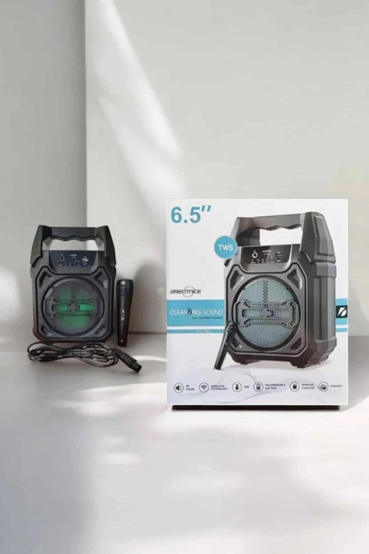 1283 Kablosuz Bluetooth Hoparlör, 6.5 inçlik güçlü woofer boyutuyla etkileyici bir ses performansı sunar. 15W çıkış gücü sayesinde derin bas ve net tiz sesler üreterek müzik dinleme deneyiminizi bir üst seviyeye taşır. Taşınabilir yapısı, şarj edilebilir 1200mAh lityum pil ile birleşerek, evde, dışarıda veya yolculukta rahatça kullanım sağlar. Hoparlör, USB, TF kart, FM radyo ve mikrofon desteği gibi çoklu bağlantı seçenekleri sunarak çok yönlü bir kullanım sağlar. Ürün, kablosuz mikrofon ve USB kablosu gibi aksesuarlarla birlikte gelir, böylece karaoke veya taşınabilir müzik çalar olarak kullanılabilir. Dayanıklı plastik kasası ve ergonomik tasarımıyla uzun ömürlü ve rahat bir kullanım imkanı sunar.