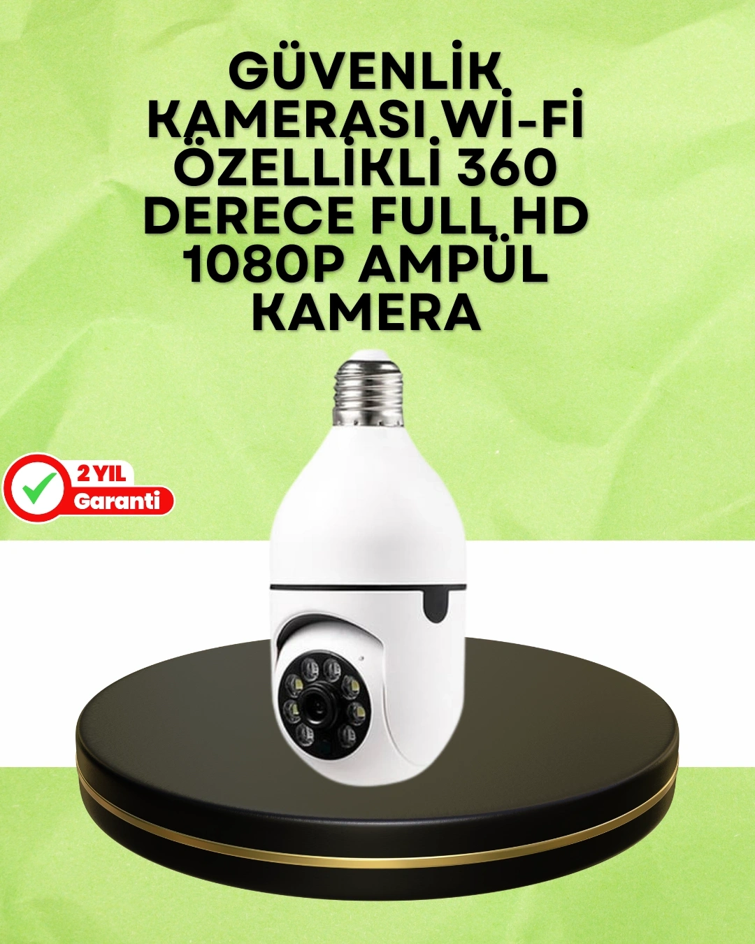 Ampul tipi bu kamera, bulunduğu ortamı 360 derece izleyerek maksimum görüntü kapsama alanı sunar. Panoramik kayıt özelliği sayesinde sabit bir noktadan tüm alanı görebilir. Görüntü kalitesi, 1080P HD seviyesinde olup ayrıntıların net şekilde görüntülenmesini sağlar.E27 ampul yuvasına monte edilerek kısa sürede kurulabilir. Pratik montaj süreci ve sade tasarımı sayesinde görünmeden izleme imkânı sağlar.Cihazda bulunan gece görüş özelliği ile ışığın olmadığı ortamlarda bile net görüntüler kaydedilir. Gece ile gündüz arasında kalite farkı en aza indirilmiştir.Hareket algılama fonksiyonu sayesinde ortamda herhangi bir hareket algılandığında otomatik olarak kayıt başlar ve kullanıcıya bildirim gönderilir.İki yönlü ses desteği sayesinde karşılıklı konuşma yapılabilir veya ortam dinlenebilir. Bu özellik özellikle giriş çıkışları kontrol etmek isteyen kullanıcılar için avantaj sağlar.