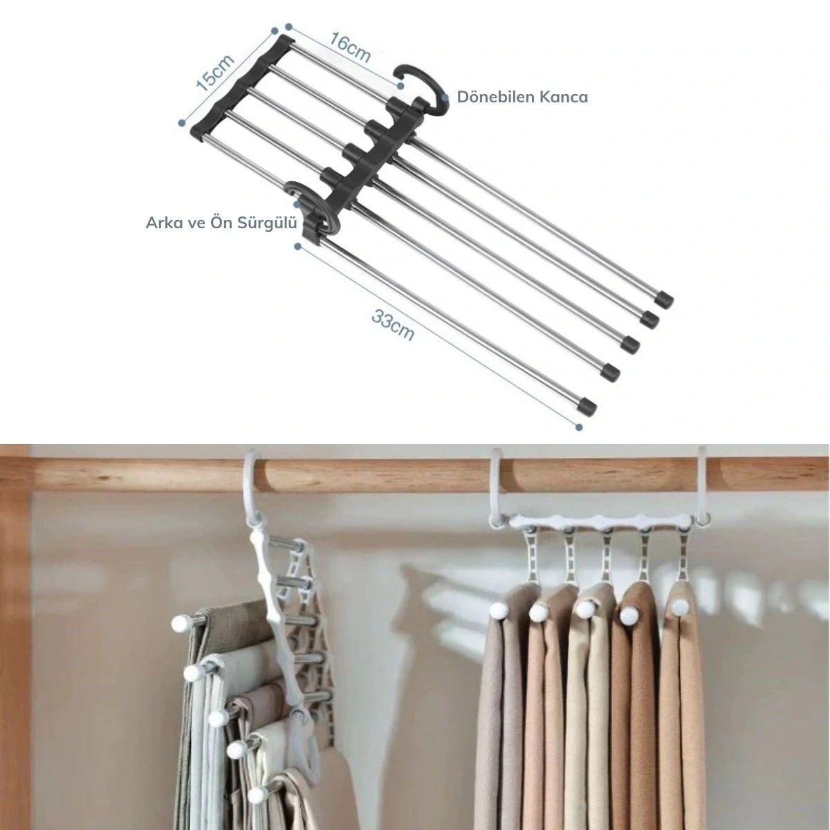 5-in-1 tasarım pantolonunuzu temiz ve düzenli tutar, daha fazla yer tasarrufu sağlar.