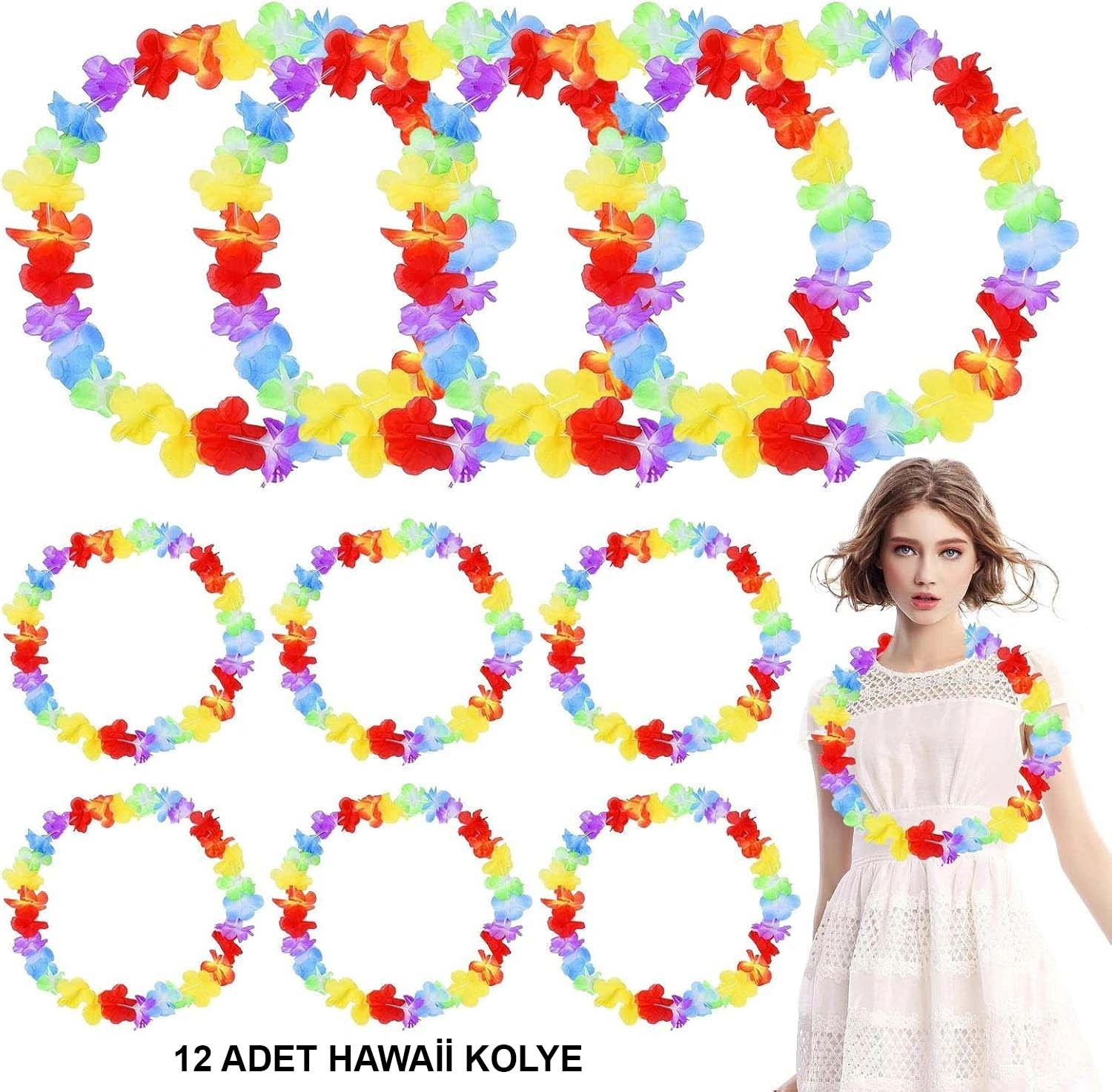 Hawaii Çiçekli Boyun Kolyesi - Renkli Tropikal Parti Leisi (12 Adet) Tropikal bir atmosfer oluşturmak isteyenler için mükemmel bir seçim! Hawaii çiçekli boyun kolyesi, rengarenk çiçeklerle bezeli Leisi kolyeleriyle parti ve etkinliklerinizi unutulmaz hale getirin. Toplamda 12 adet renkli tropikal boyun kolyesi içeren bu set, özellikle doğum günü kutlamaları, plaj partileri, Hawaii temalı etkinlikler ve yaz festivalleri için idealdir. Her bir kolye, canlı renklerdeki yapay çiçeklerle tasarlanmış olup, kolayca takılabilen ve şıklığıyla dikkat çeken bir üründür. Sarı, kırmızı, pembe, mor, mavi ve beyaz gibi tropikal renk tonlarına sahip olan bu Leisi kolyeleri, misafirlerinize Hawai'nin sıcak ve enerjik havasını yansıtacak. Özellikler: 12 adet renkli tropikal çiçekli boyun kolyesi. Canlı ve parlak renklerle şıklık sağlar. Parti ve etkinlikler için mükemmel aksesuar. Yumuşak ve hafif yapısı ile konforlu kullanım. Birçok farklı temalı etkinlikte kullanılabilir. Hawaii çiçekli boyun kolyesi seti ile katılımcılarınızı tropikal bir atmosfere davet edin ve kutlamalarınızı daha eğlenceli hale getirin. Her yaşa hitap eden bu renkli ve enerjik kolyeler, etkinliklerinize keyif katacak!