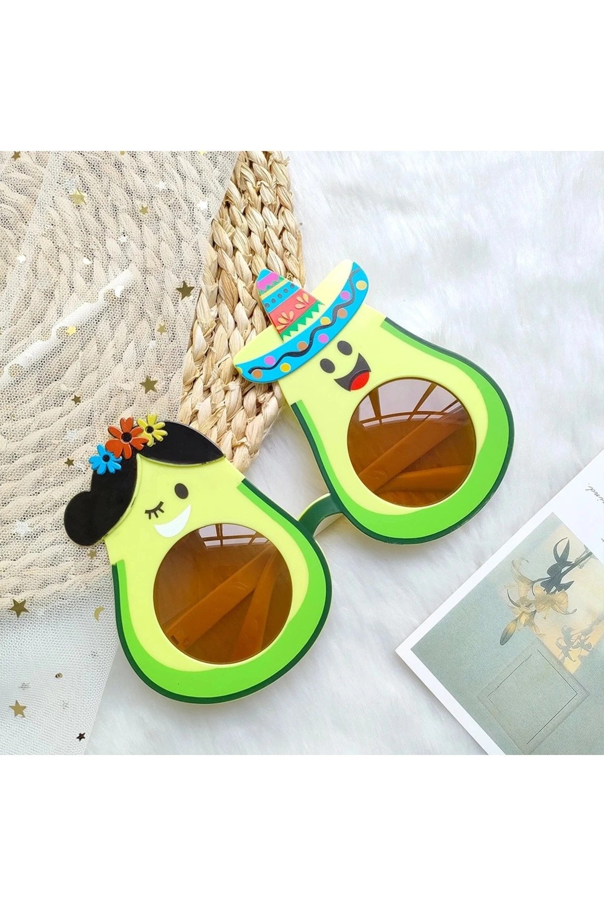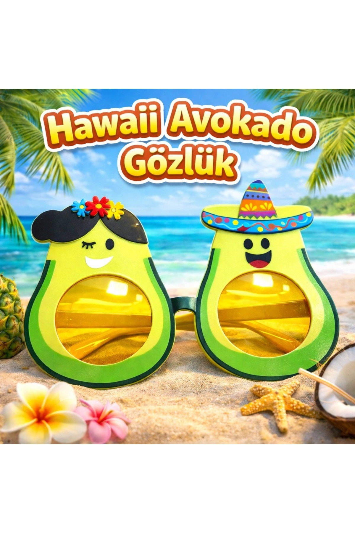 Hawaii Avokado Parti Gözlüğü, eğlenceli tasarımı ve canlı renkleriyle parti ve organizasyonların vazgeçilmez aksesuarıdır.; Avokado figürlü özel tasarımı sayesinde hem dikkat çeker hem de eğlenceli bir görünüm sunar.; Doğum günü partileri, yaz partileri, konsept organizasyonlar, sahne gösterileri ve eğlence etkinliklerinde rahatlıkla kullanılabilir.; Hafif yapısı sayesinde uzun süre kullanımda rahatsızlık vermez.; Öne Çıkan Özellikler: Avokado figürlü eğlenceli tasarım Hawaii konseptli detaylar Parti ve kostüm etkinlikleri için ideal Hafif ve kullanımı rahat Fotoğraf çekimleri için dikkat çekici aksesuar Hem çocuklar hem de yetişkinler için uygundur.; Eğlenceyi ve enerjiyi yansıtan bu özel gözlük ile organizasyonlarınıza renk katabilirsiniz.