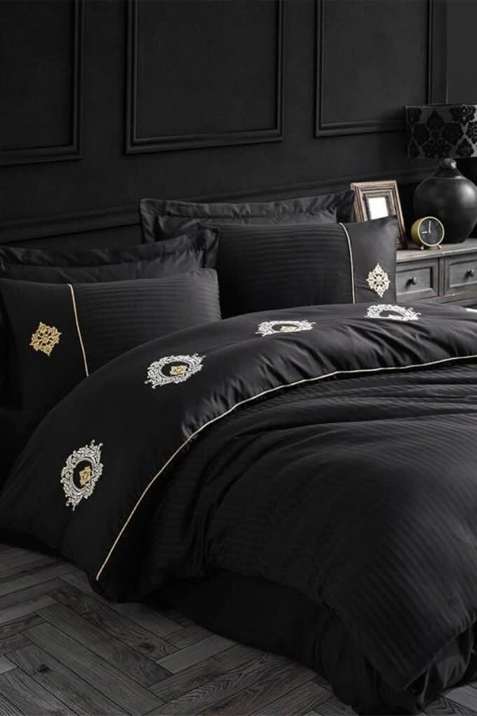 Hobby Elegant Nakışlı Pamuk Saten Çift Kişilik Nevresim Takımı Olimpos Siyah