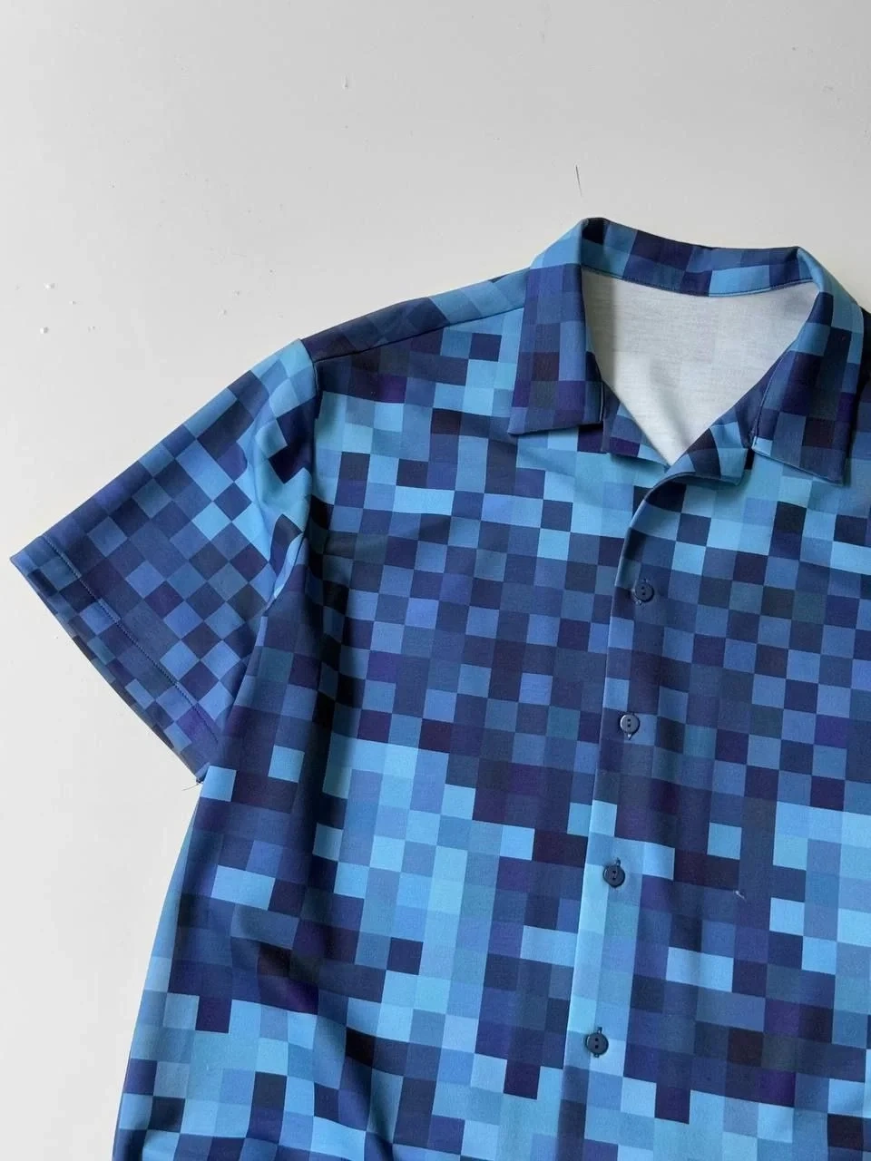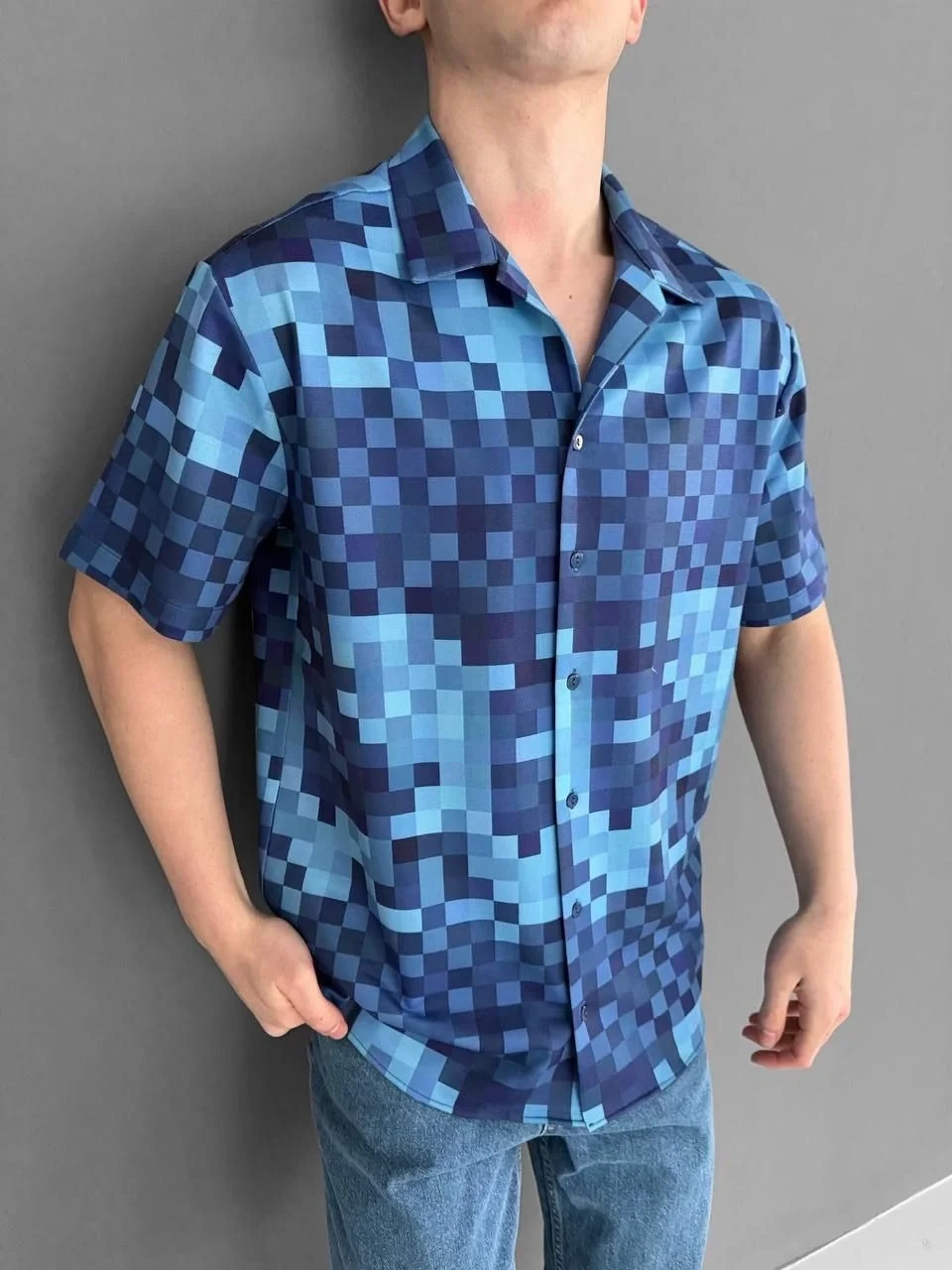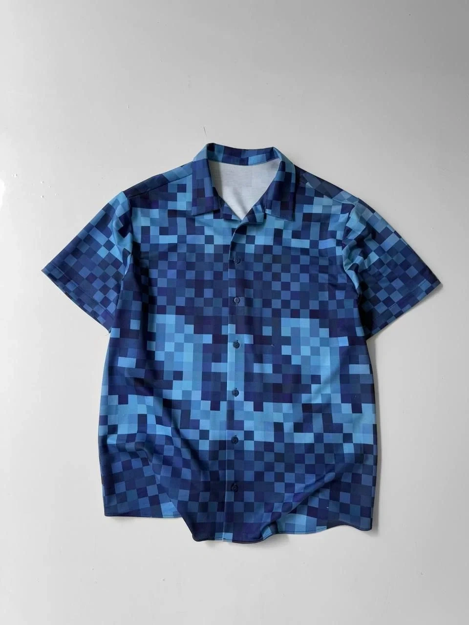 • İki İplik Kumaş Baskılı Gömlek - Mavi