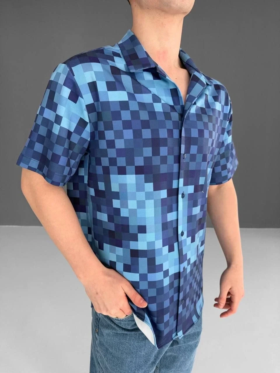 İki İplik Kumaş Baskılı Gömlek - Mavi
