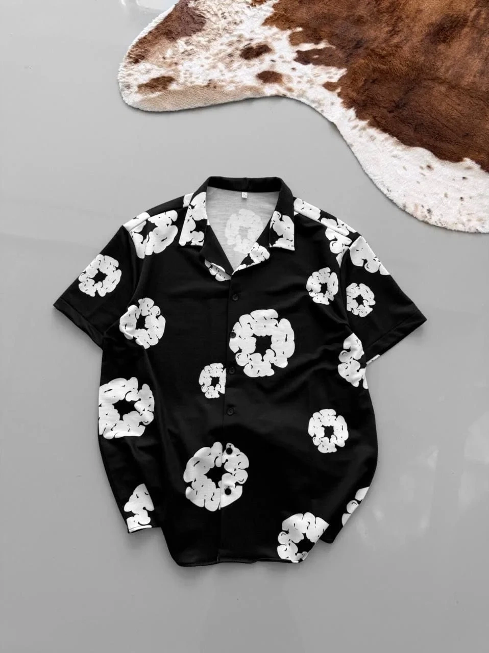 • İki İplik Kumaş Baskılı Gömlek - Siyah
