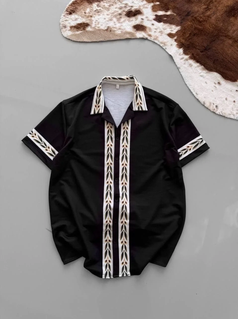 • İki İplik Kumaş Baskılı Gömlek - Siyah