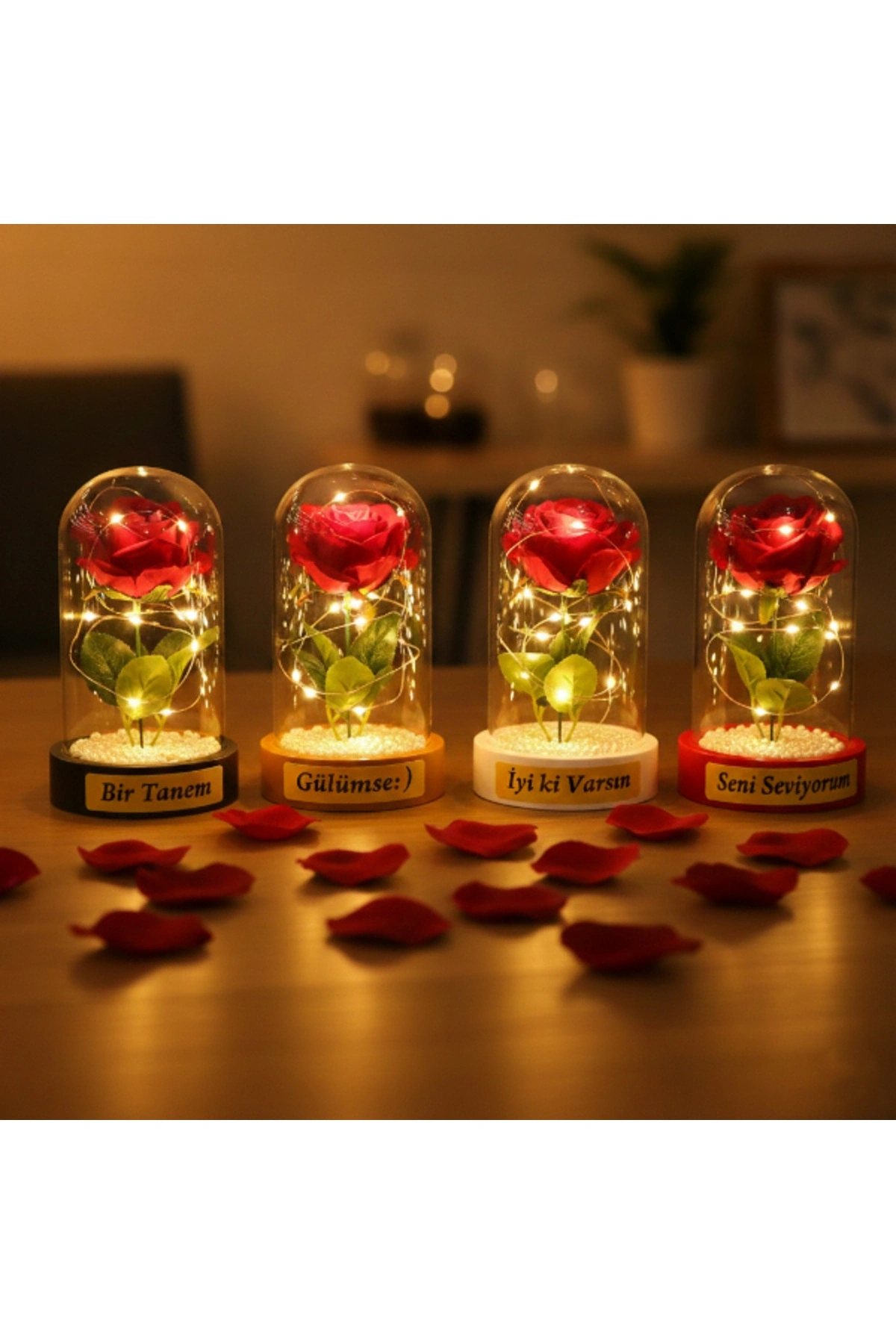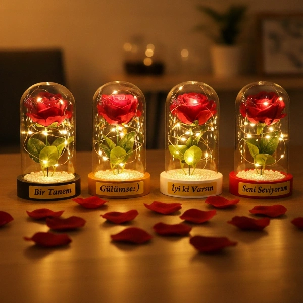 İNCİLİ LEDLİ GÜL FANUSÜrün Özellikleriİncili ledli gül fanus, zarif detayları ve sıcak ışık etkisiyle yaşam alanlarına romantik bir ambiyans kazandıran dekoratif bir üründür. Şeffaf fanus içerisinde yer alan tekli yapay gül, taban kısmındaki inci detaylarıyla estetik bir bütünlük sunar. Sahip olduğu gün ışığı LED aydınlatma sayesinde yumuşak ve huzur verici bir ışık yayarak masa, komodin ve raf üzerinde şık bir görünüm oluşturur. Kompakt ölçüsüyle yer kaplamadan kullanılabilen bu model, özel günlerde romantik dekoratif fanus arayanlar için ideal bir tercihtir. Model seçimi yapılamayan ürün, görsellerde yer alan tasarımlardan biri olacak şekilde karışık model gönderimi yapılmaktadır. Özellik Açıklama Ürün Adı İncili Ledli Gül Fanus Boyut 10 x 18 cm Aydınlatma Gün ışığı LED Tasarım Şeffaf fanus, tekli gül Detay Taban kısmında inci süsleme Model Karışık gönderilir Kullanım Alanı Masa, komodin, raf Kullanım Amacı Dekoratif ve hediyelik Paket İçeriği1 adet incili ledli gül fanus