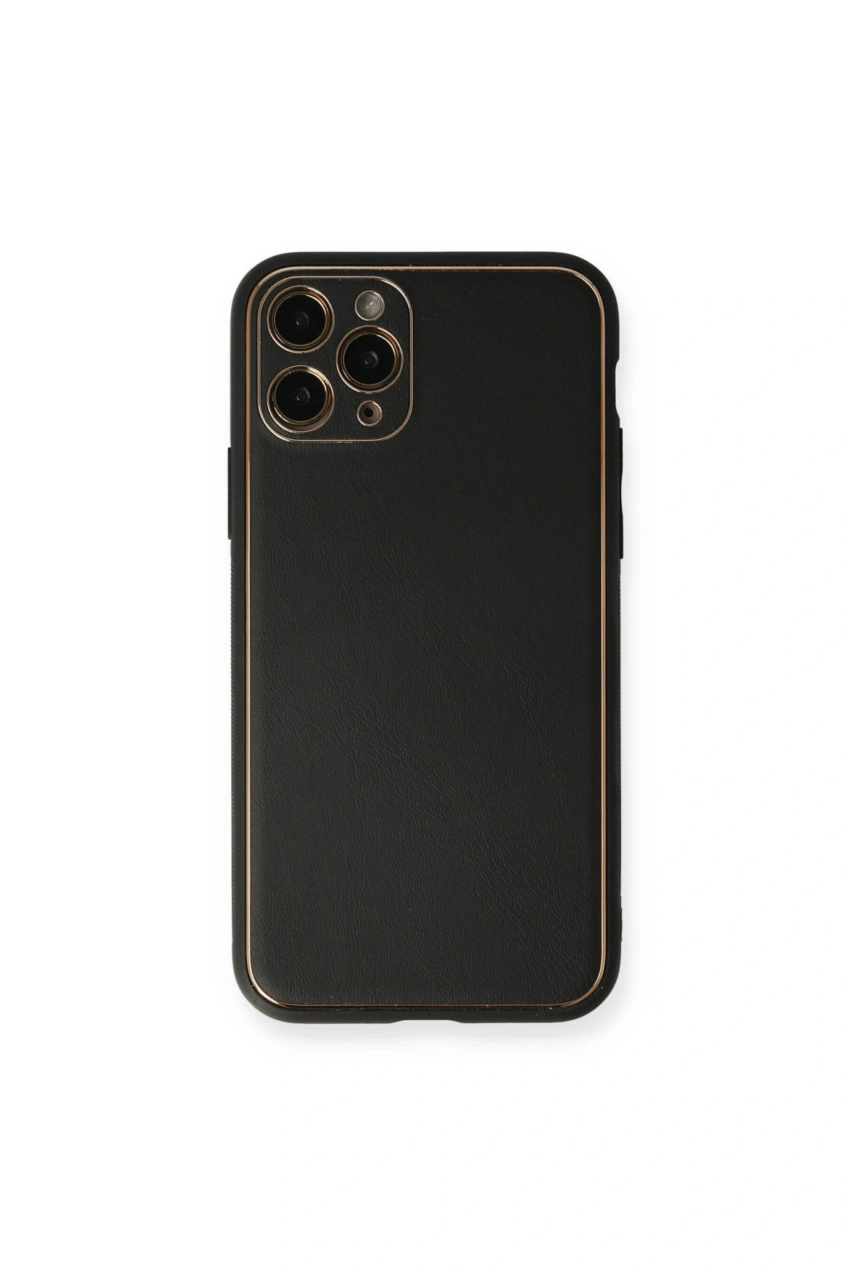 İphone 11 Pro Max Kılıf Coco Deri Silikon Kapak - Siyah