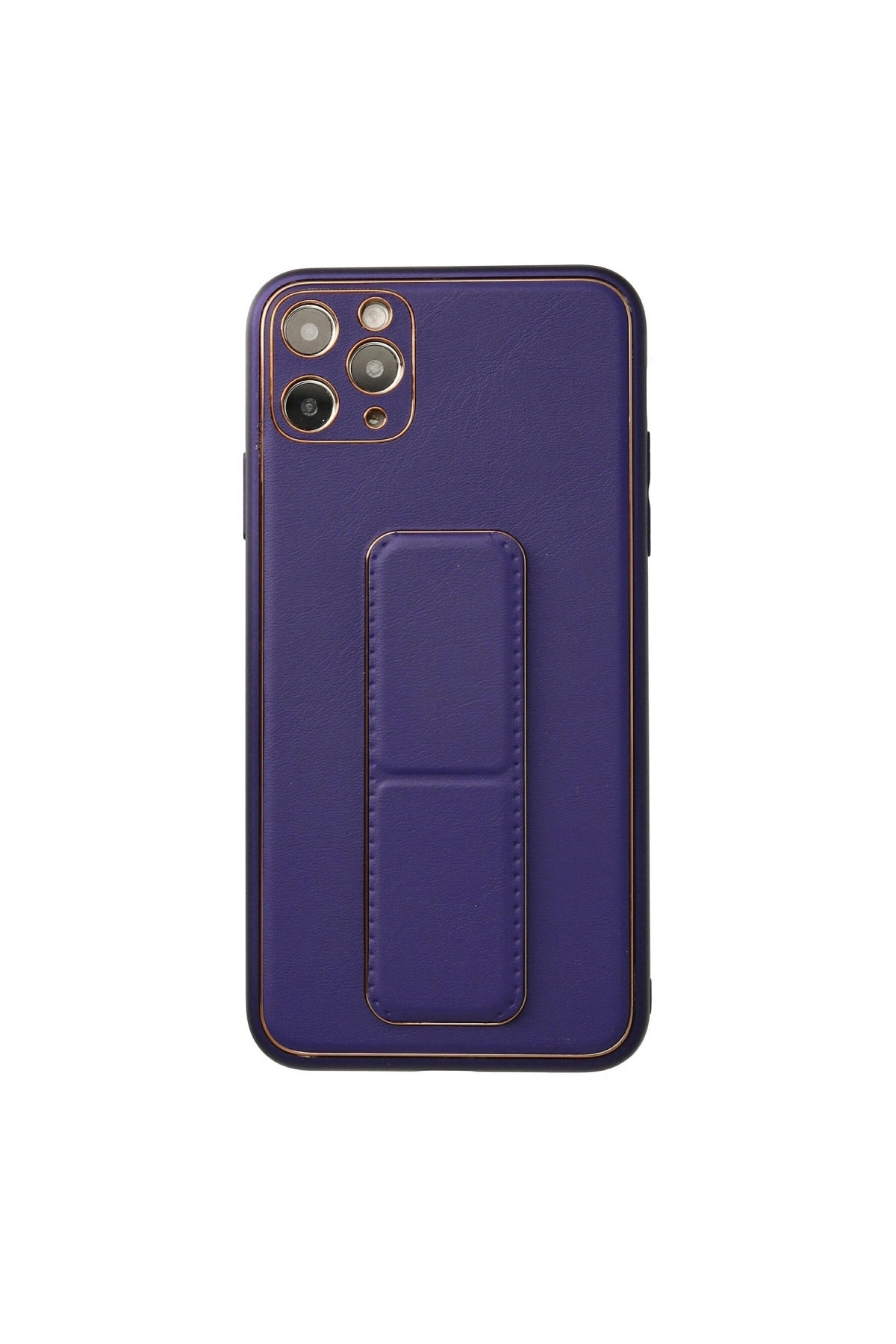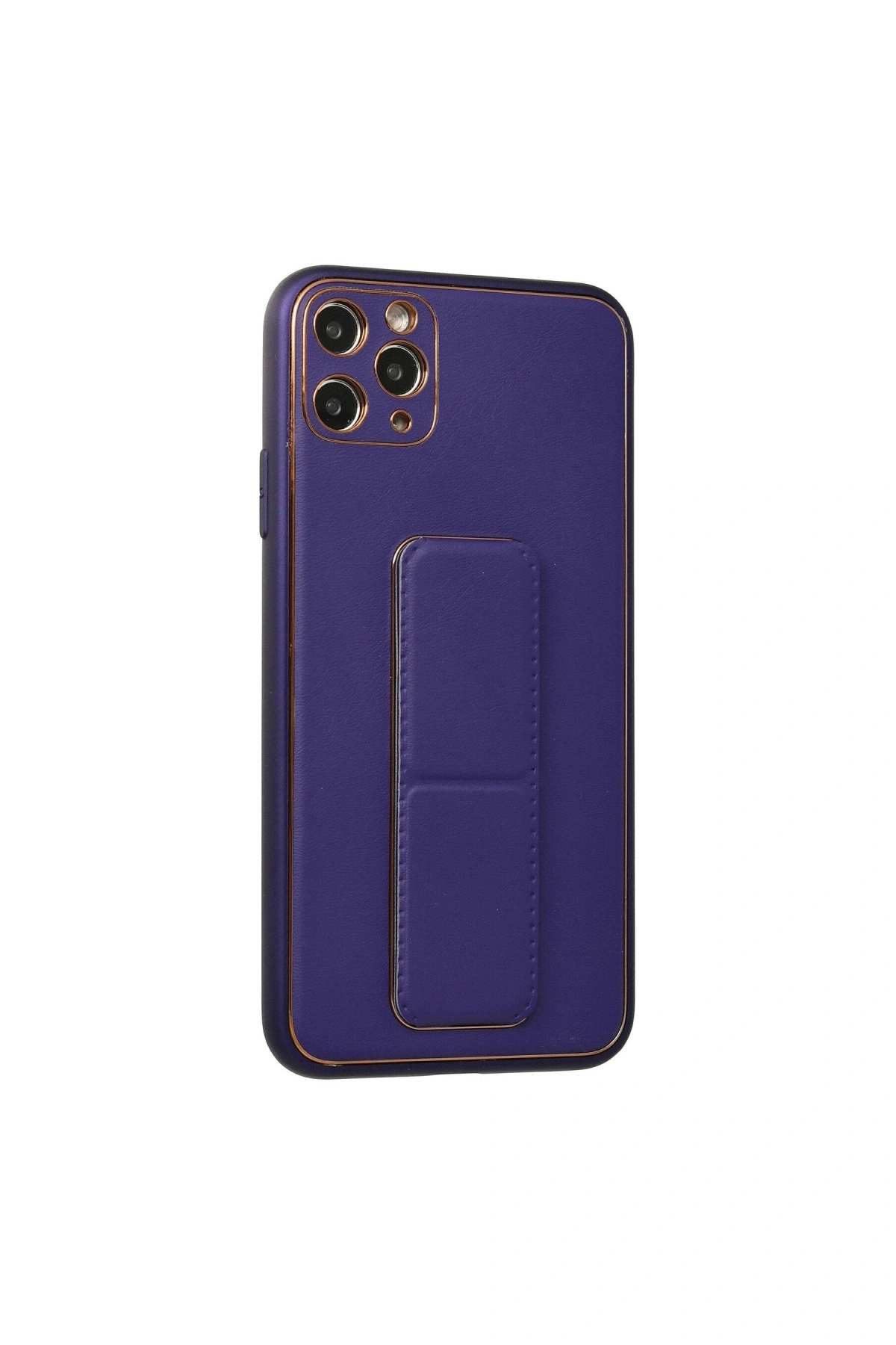 İphone 11 Pro Max Kılıf Coco Deri Standlı Kapak - Mor