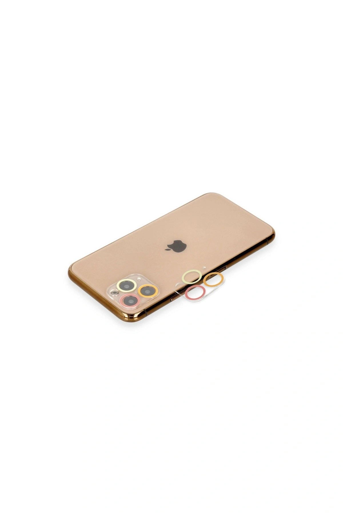 İphone 11 Pro Max Renkli Kamera Lens Koruma Cam - Turuncu-kırmızı