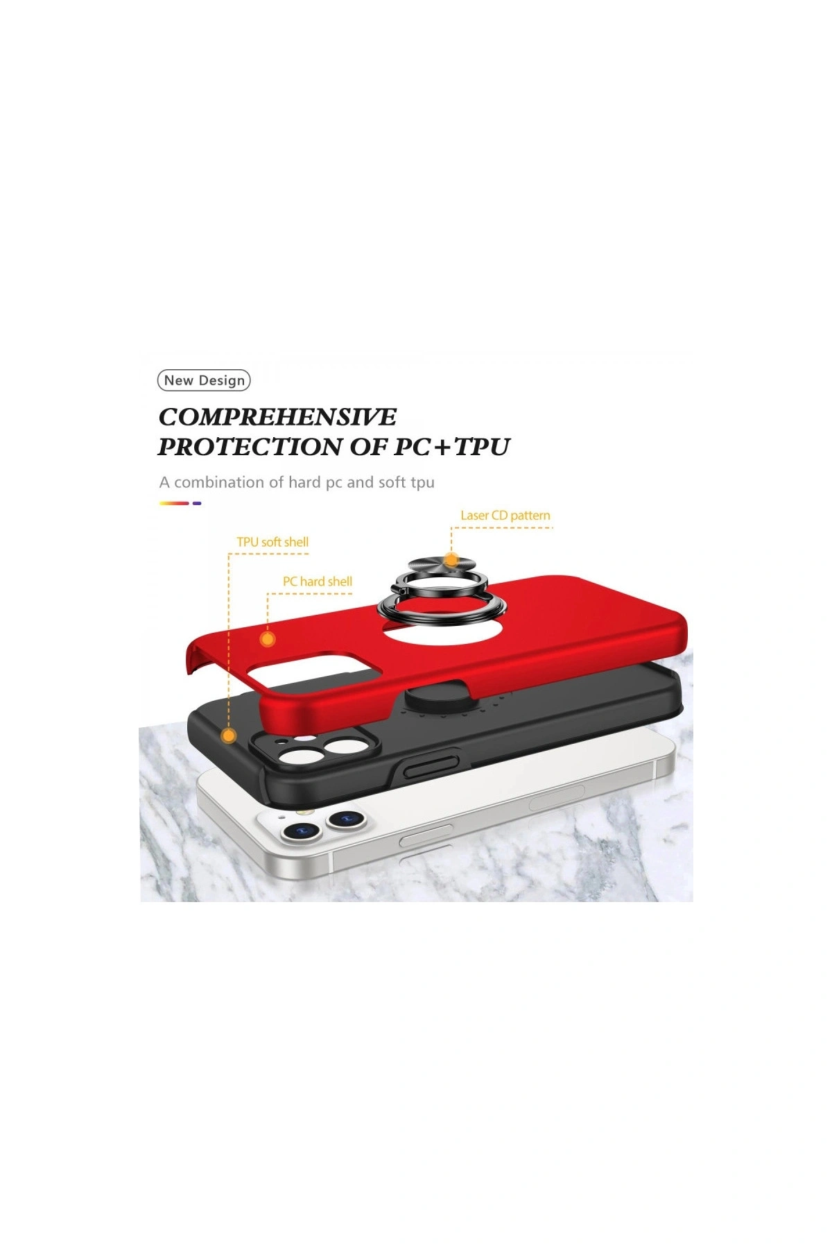 İphone 12 Kılıf Elit Yüzüklü Kapak - Kırmızı