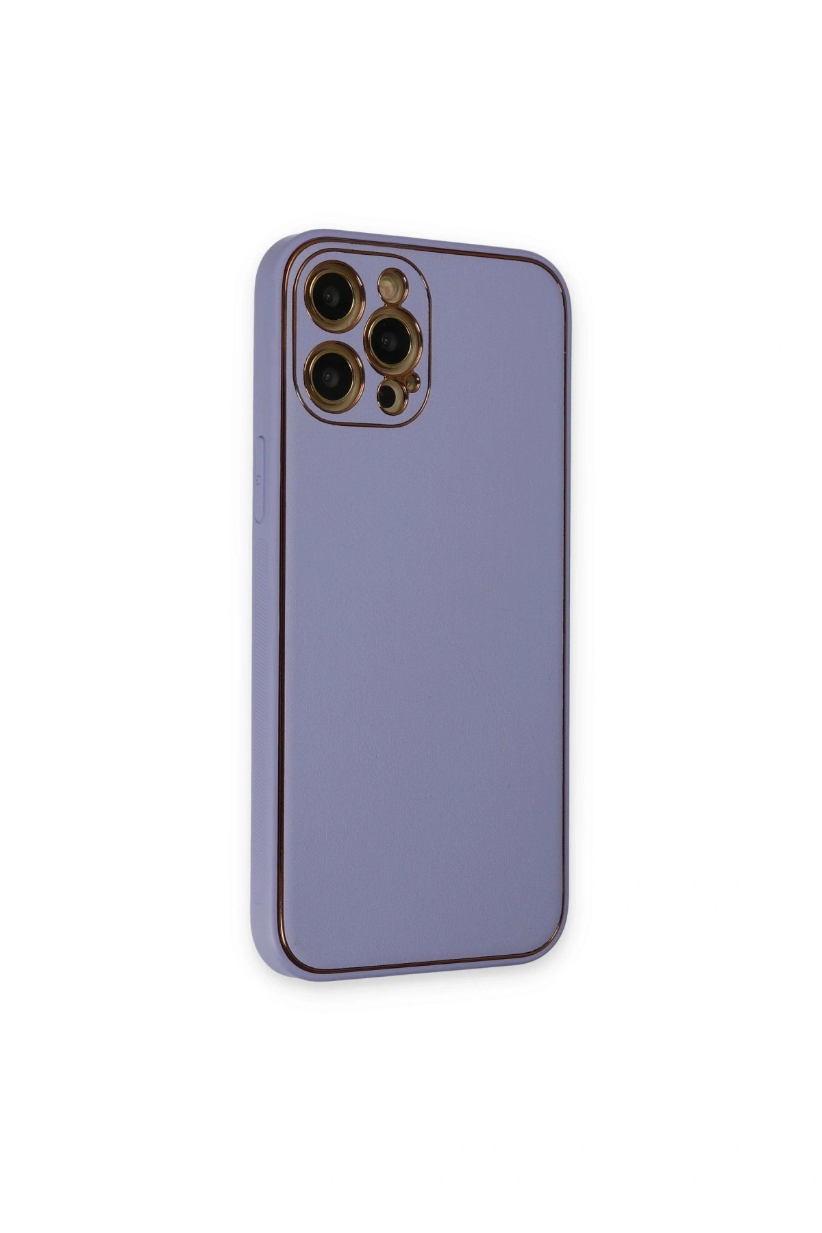 İphone 12 Pro Kılıf Coco Deri Silikon Kapak - Açık Lila