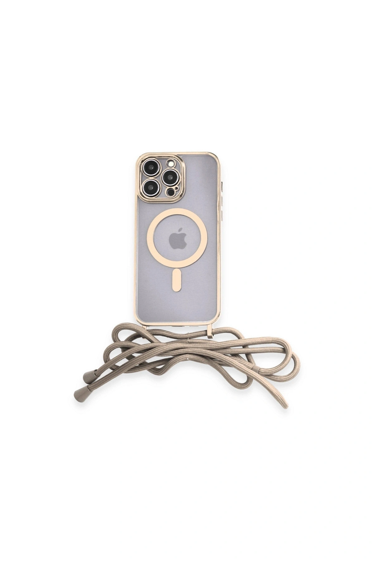 İphone 12 Pro Max Kılıf Divo Lazer Askılı Magsafe Kapak - Gold