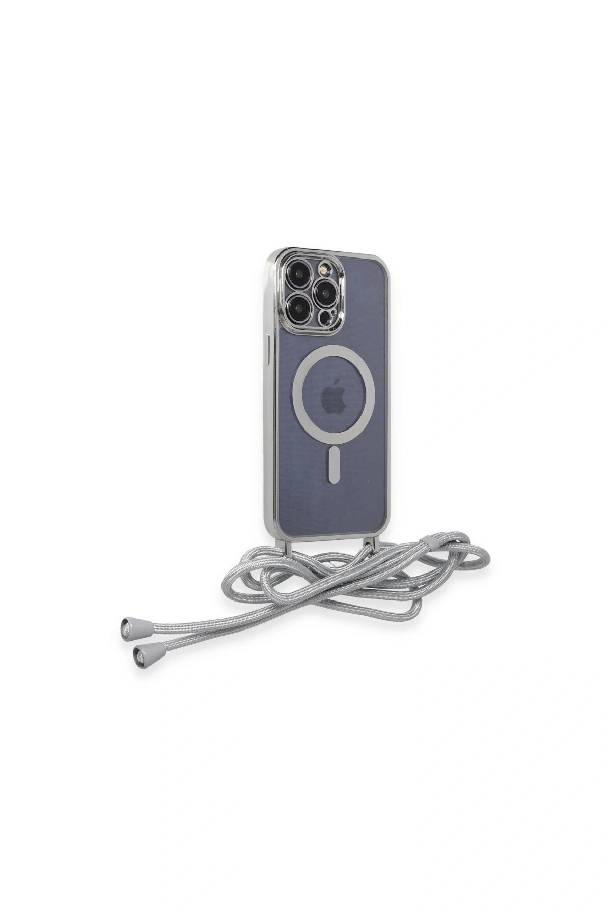 İphone 12 Pro Max Kılıf Divo Lazer Askılı Magsafe Kapak - Gümüş