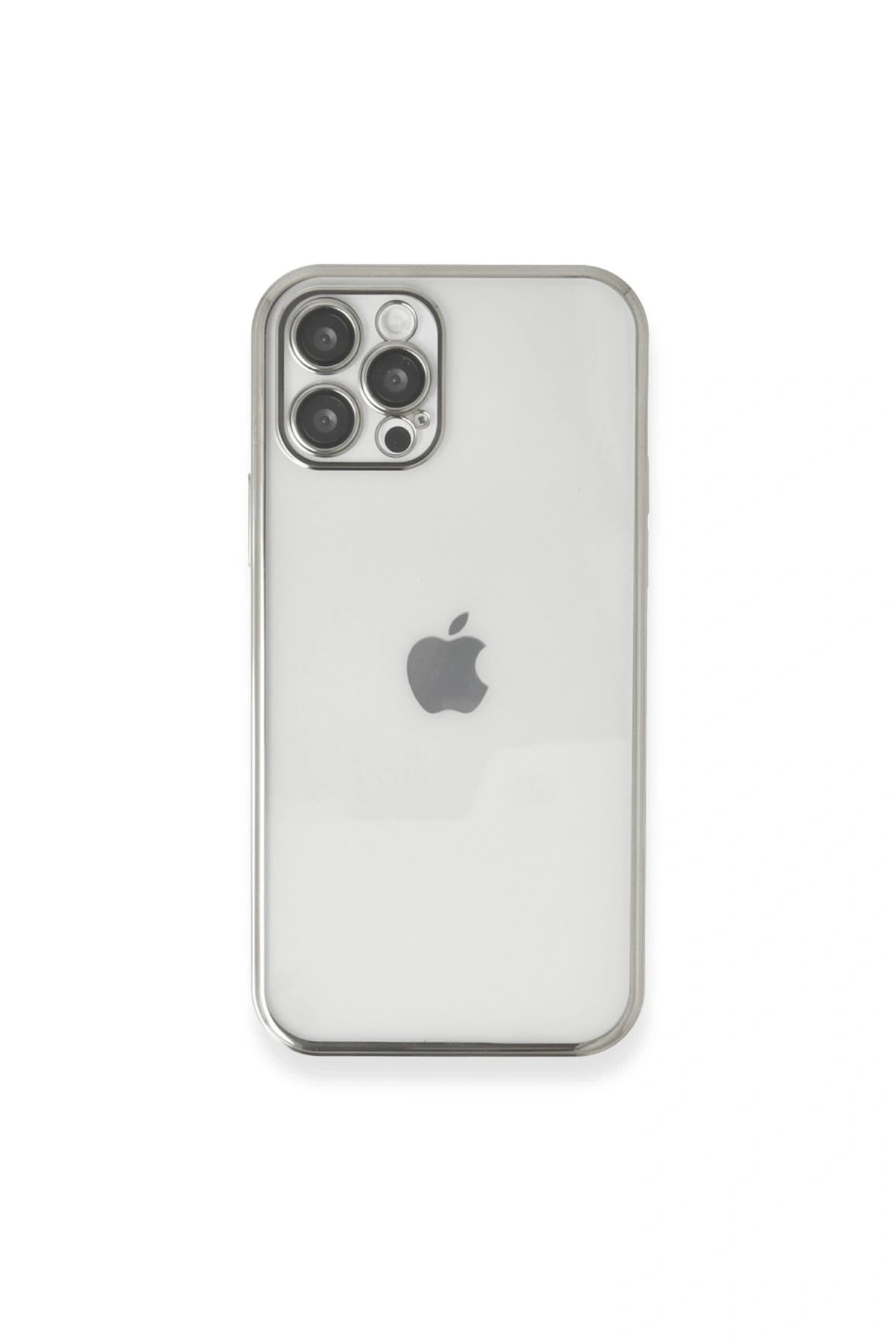 İphone 12 Pro Max Kılıf Lensli Silikon - Gümüş