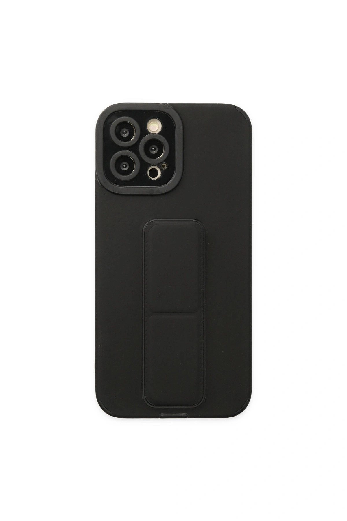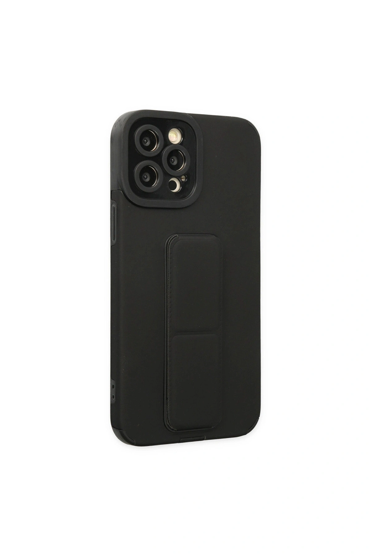 İphone 12 Pro Max Kılıf Mega Standlı Silikon - Siyah