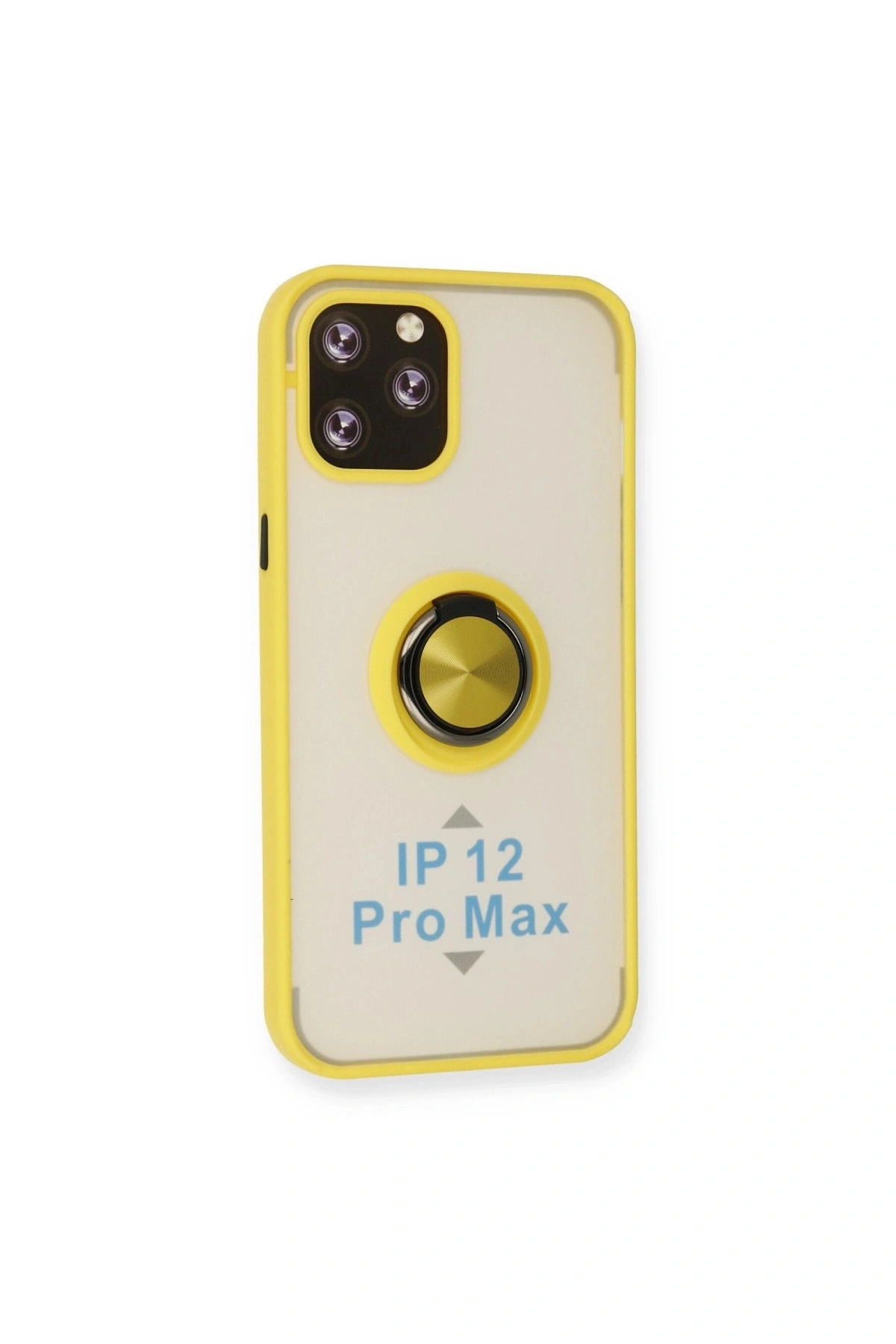 İphone 12 Pro Max Kılıf Montreal Yüzüklü Silikon Kapak - Sarı