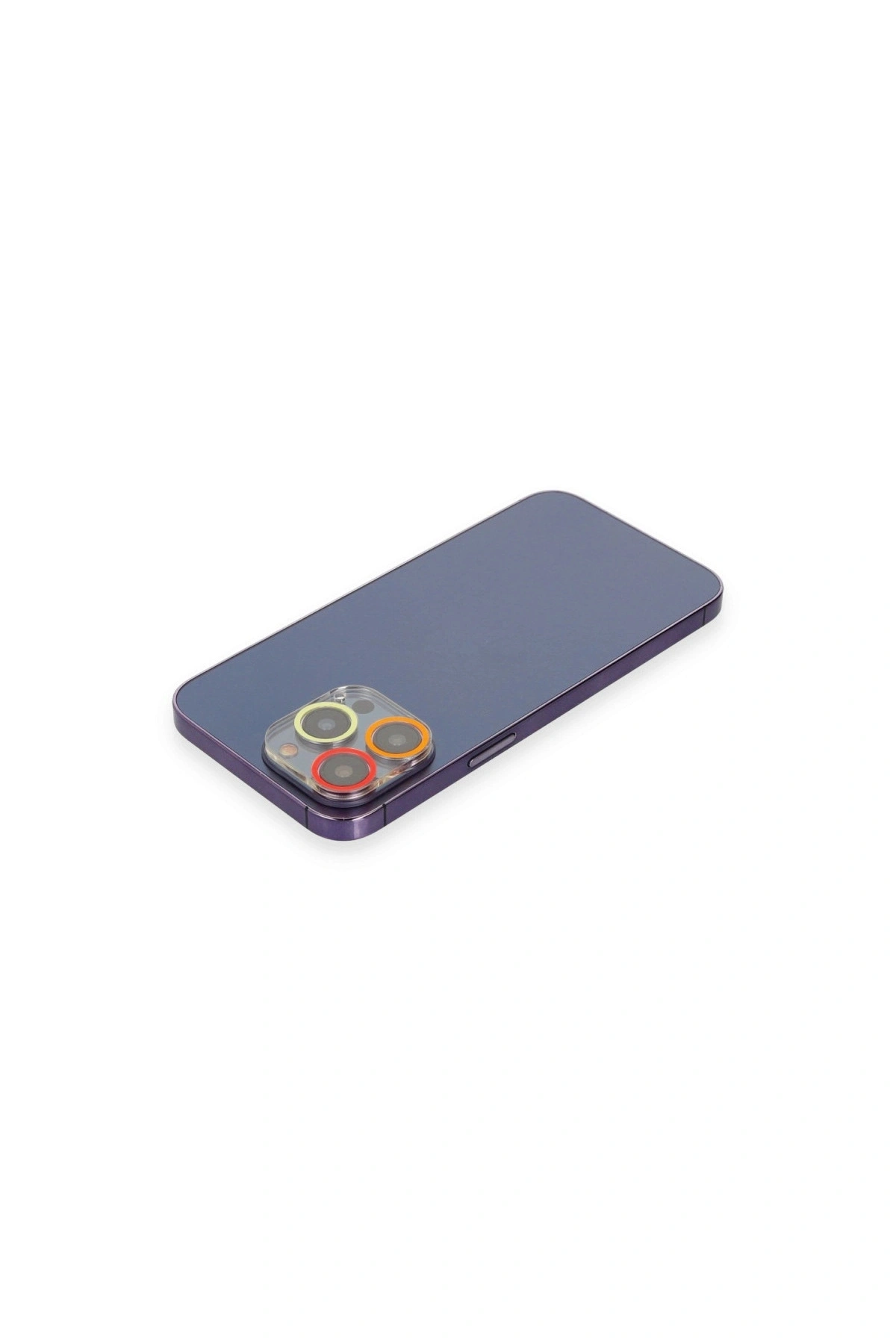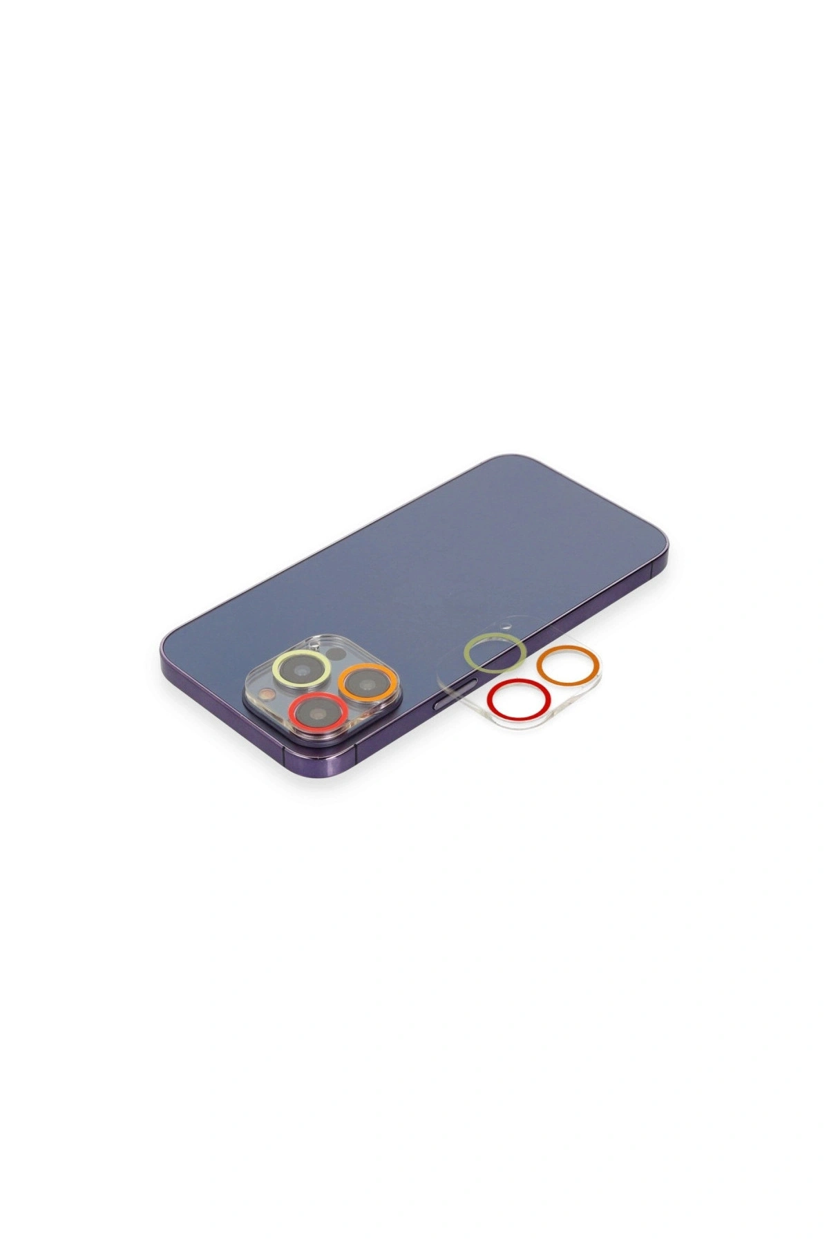 İphone 12 Pro Renkli Kamera Lens Koruma Cam - Turuncu-kırmızı