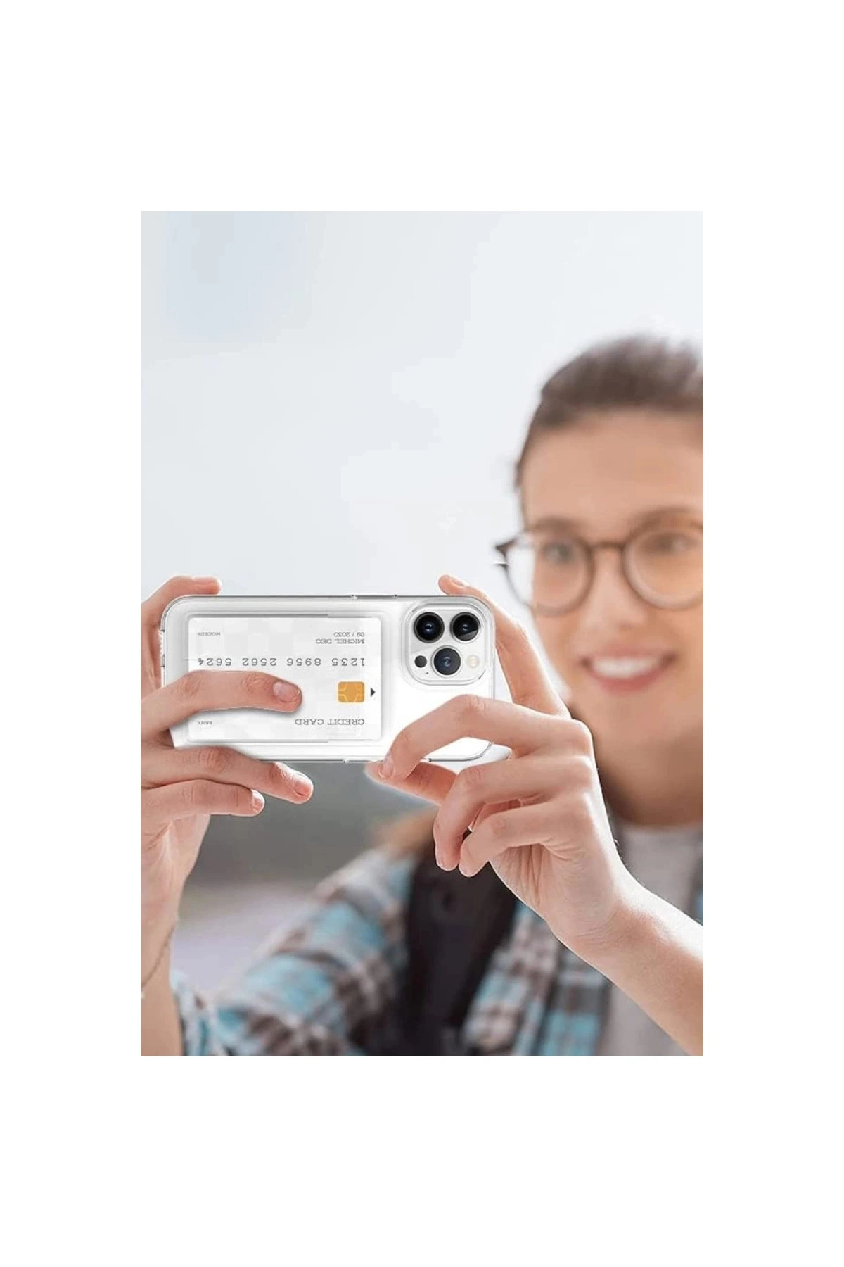 İphone 13 Kılıf Kart Şeffaf Silikon - Şeffaf