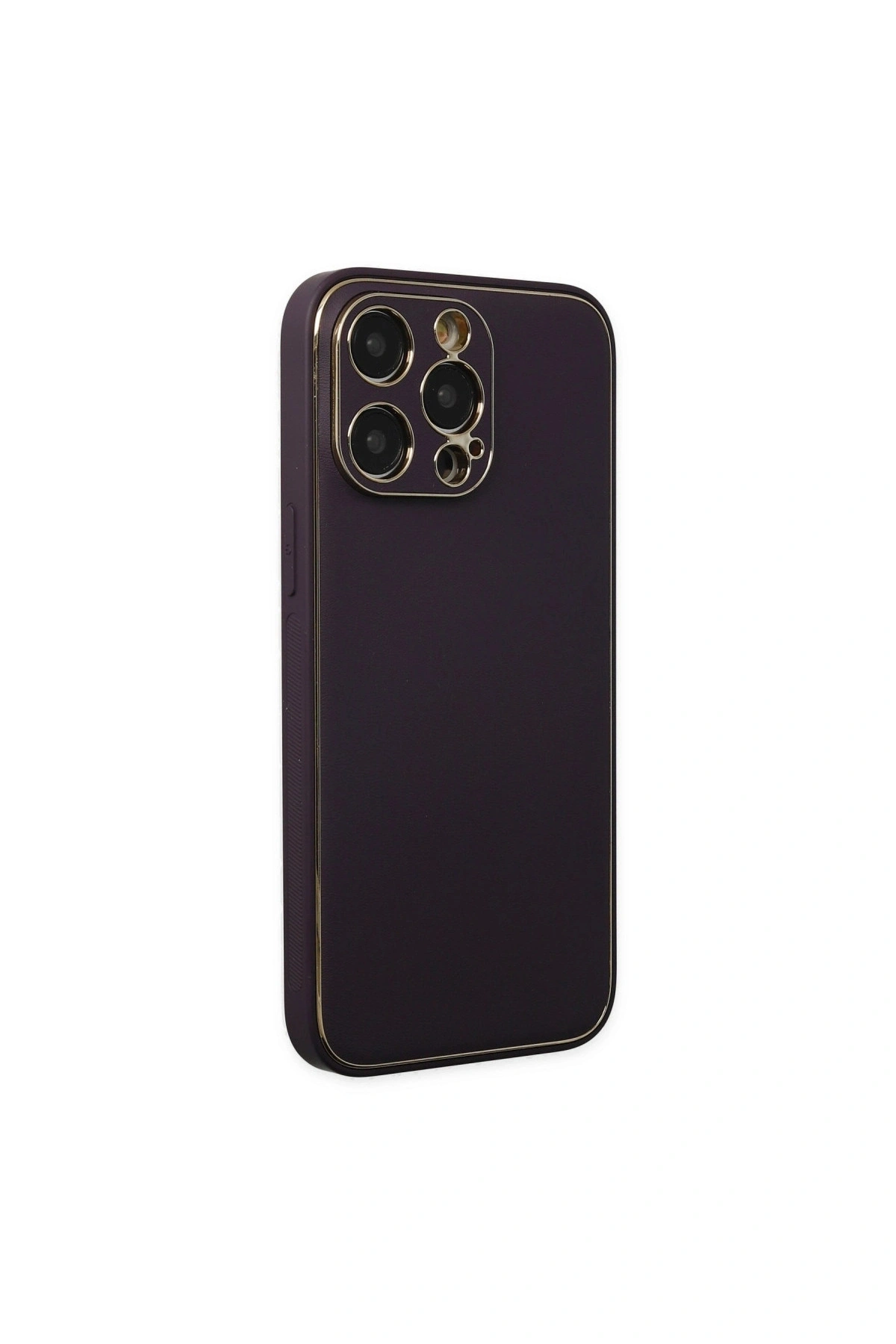 İphone 13 Pro Kılıf Coco Deri Silikon Kapak - Derin Mor