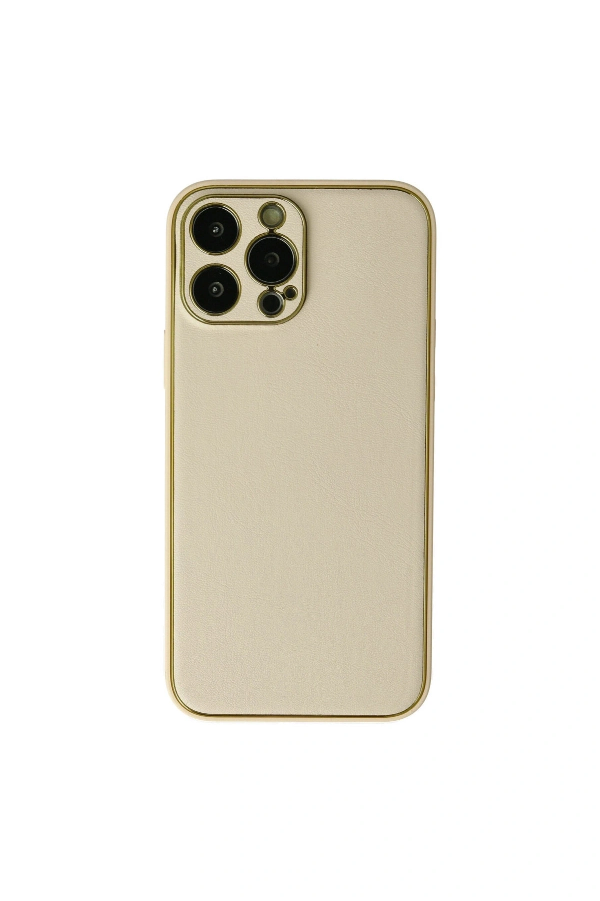 İphone 13 Pro Kılıf Coco Deri Silikon Kapak - Gold