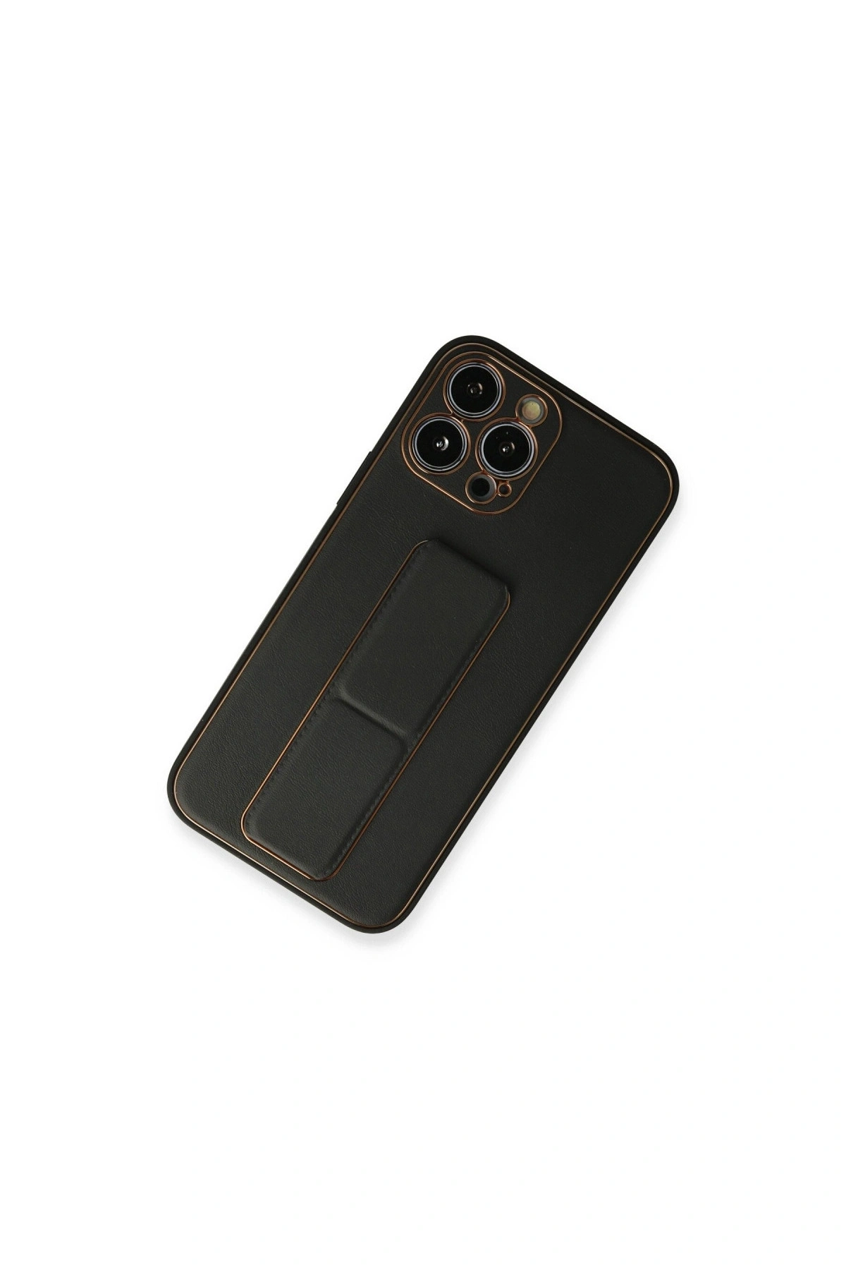 İphone 13 Pro Kılıf Coco Deri Standlı Kapak - Siyah
