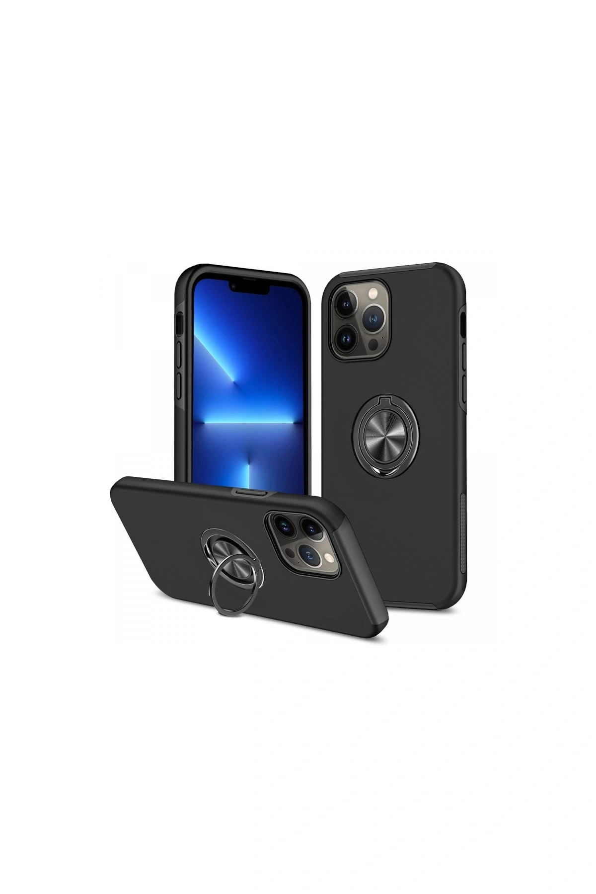 İphone 13 Pro Kılıf Elit Yüzüklü Kapak - Siyah