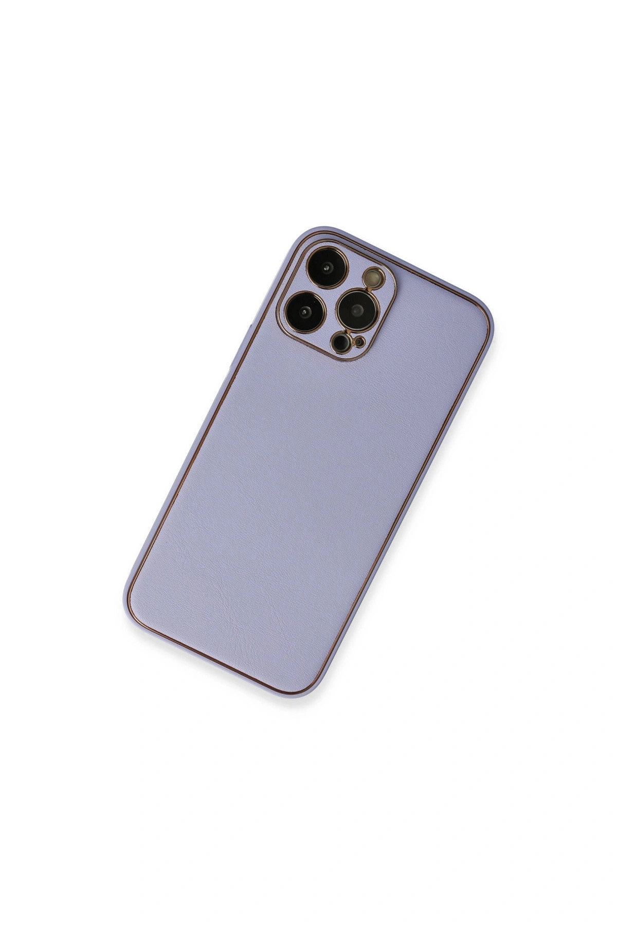 İphone 13 Pro Max Kılıf Coco Deri Silikon Kapak - Açık Lila