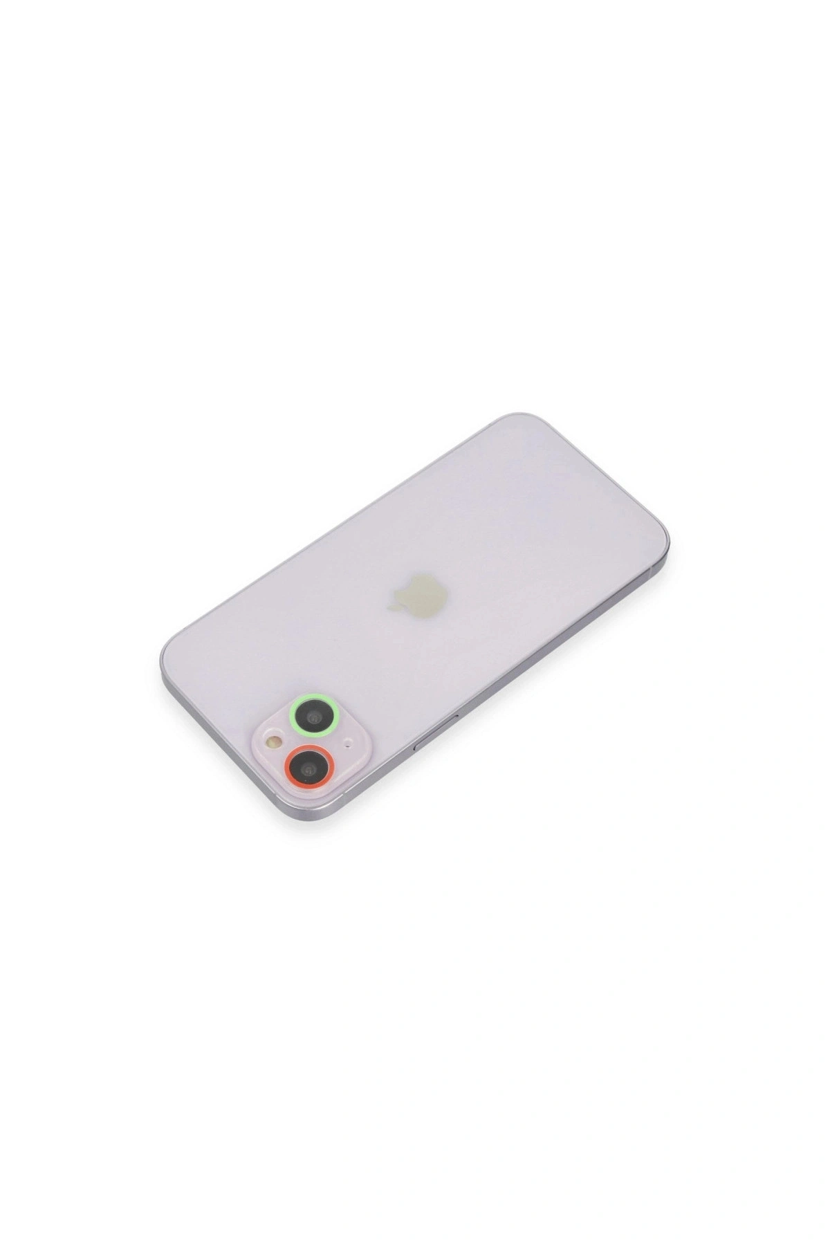 İphone 13 Renkli Kamera Lens Koruma Cam - Yeşil-pembe