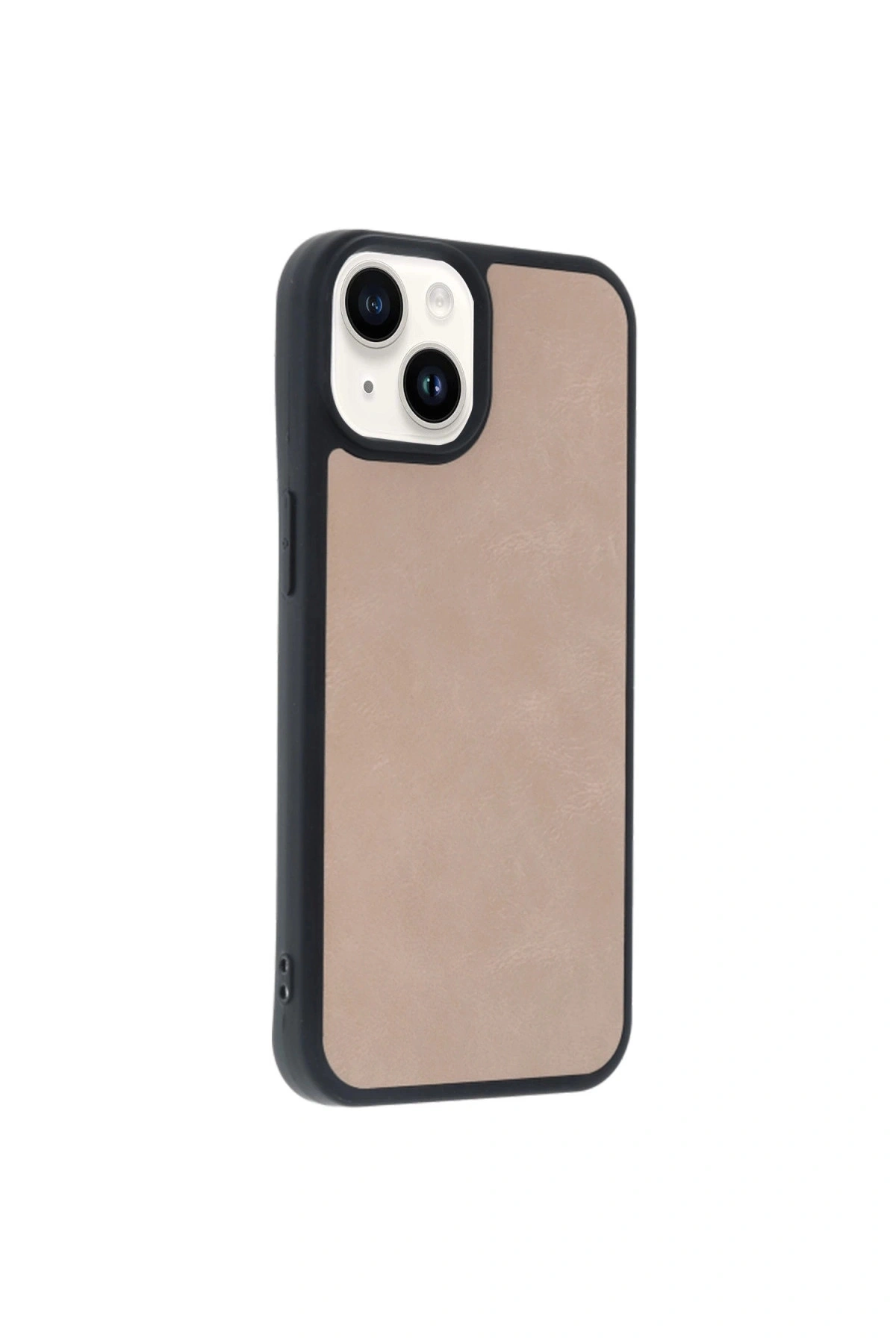 İphone 14 Kılıf Aras Deri Kapak - Pudra