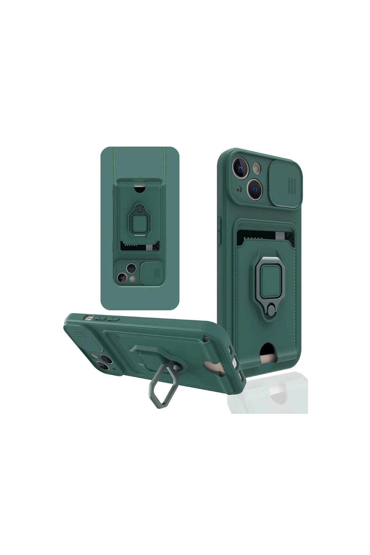 İphone 14 Plus Kılıf Zuma Kartvizitli Yüzüklü Silikon - Yeşil