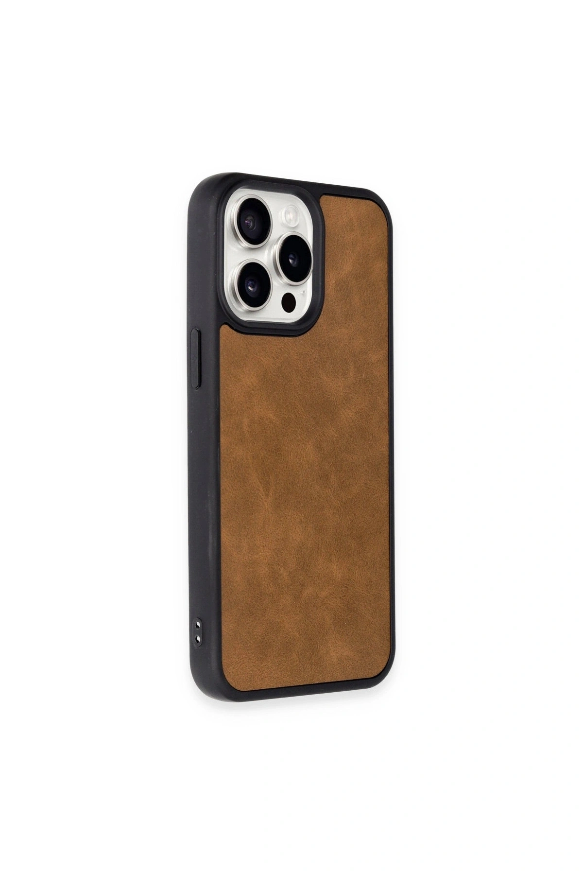 İphone 14 Pro Kılıf Aras Deri Kapak - Taba