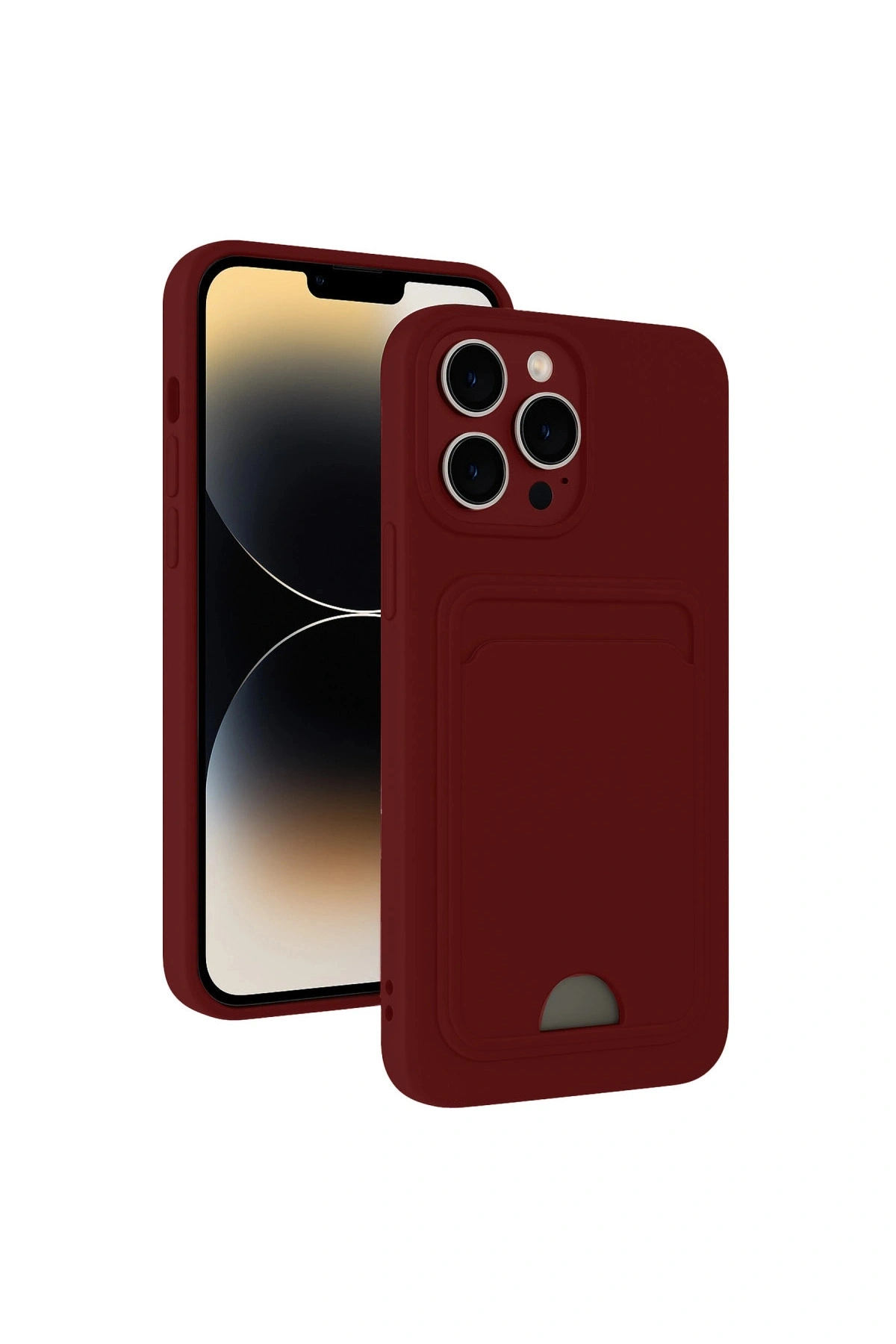 İphone 15 Pro Kılıf Kelvin Kartvizitli Silikon - Bordo