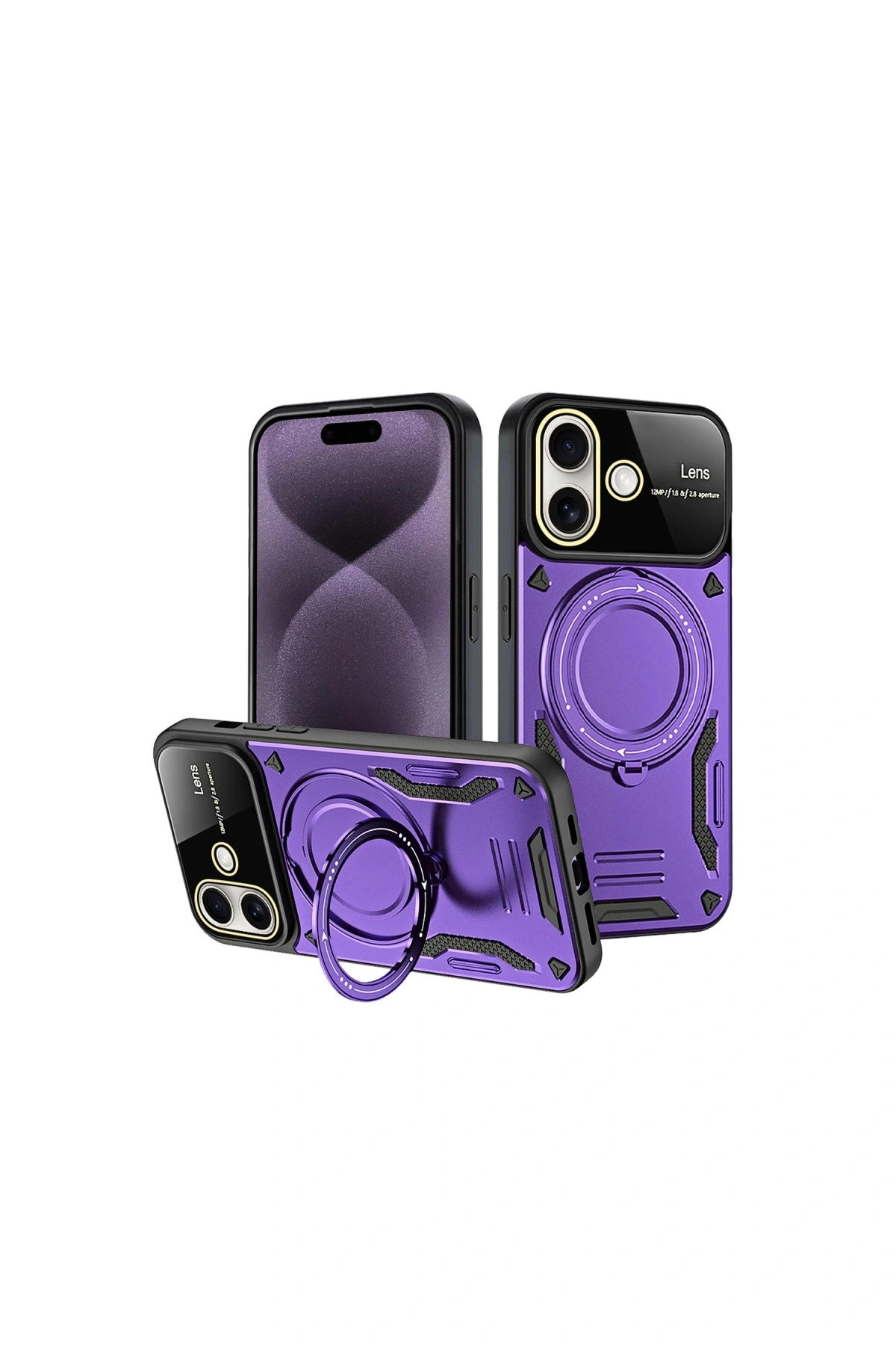 İphone 16 Kılıf Joy Lens Standlı Kapak - Mor
