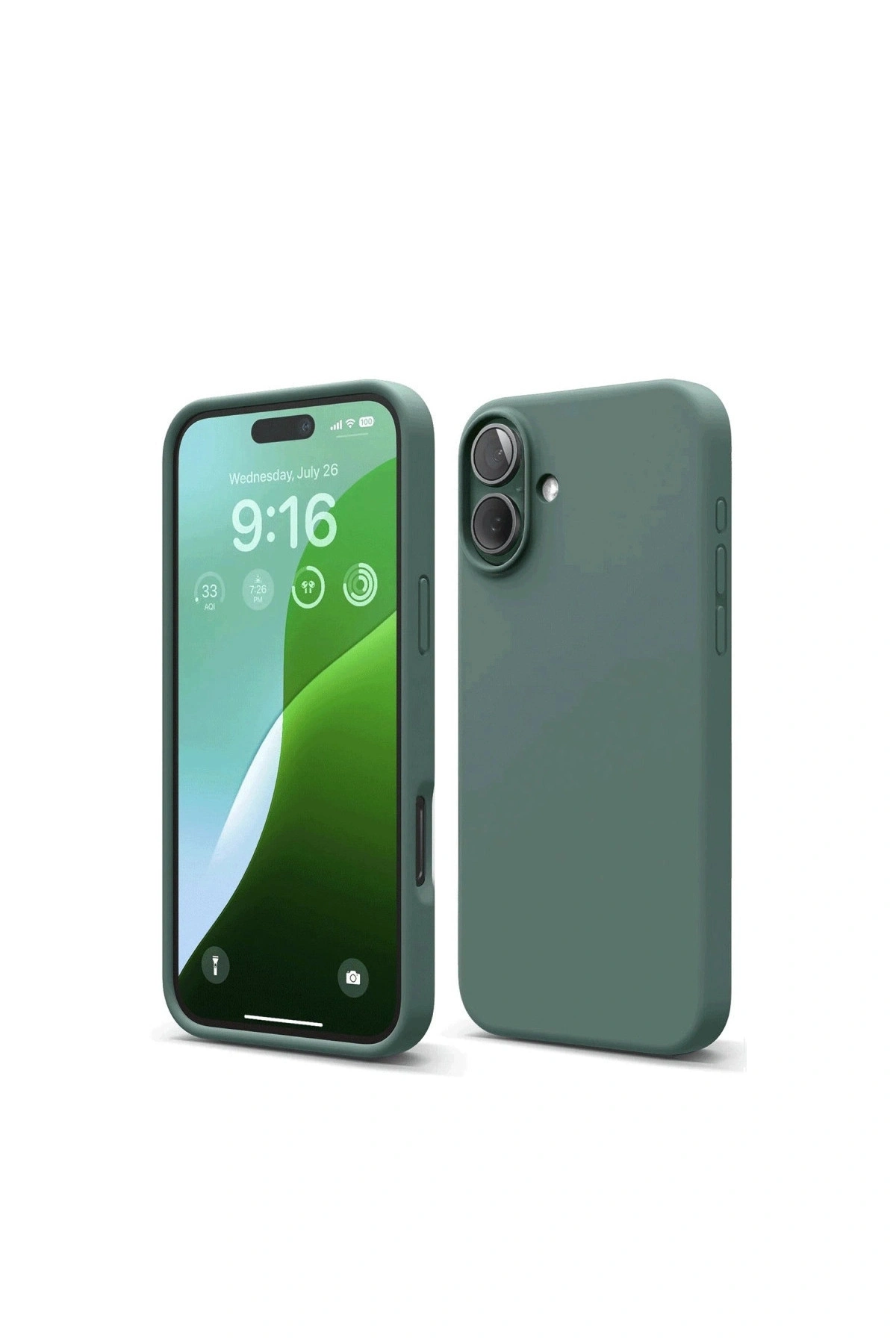 İphone 16 Kılıf Nano İçi Kadife Silikon - Koyu Yeşil
