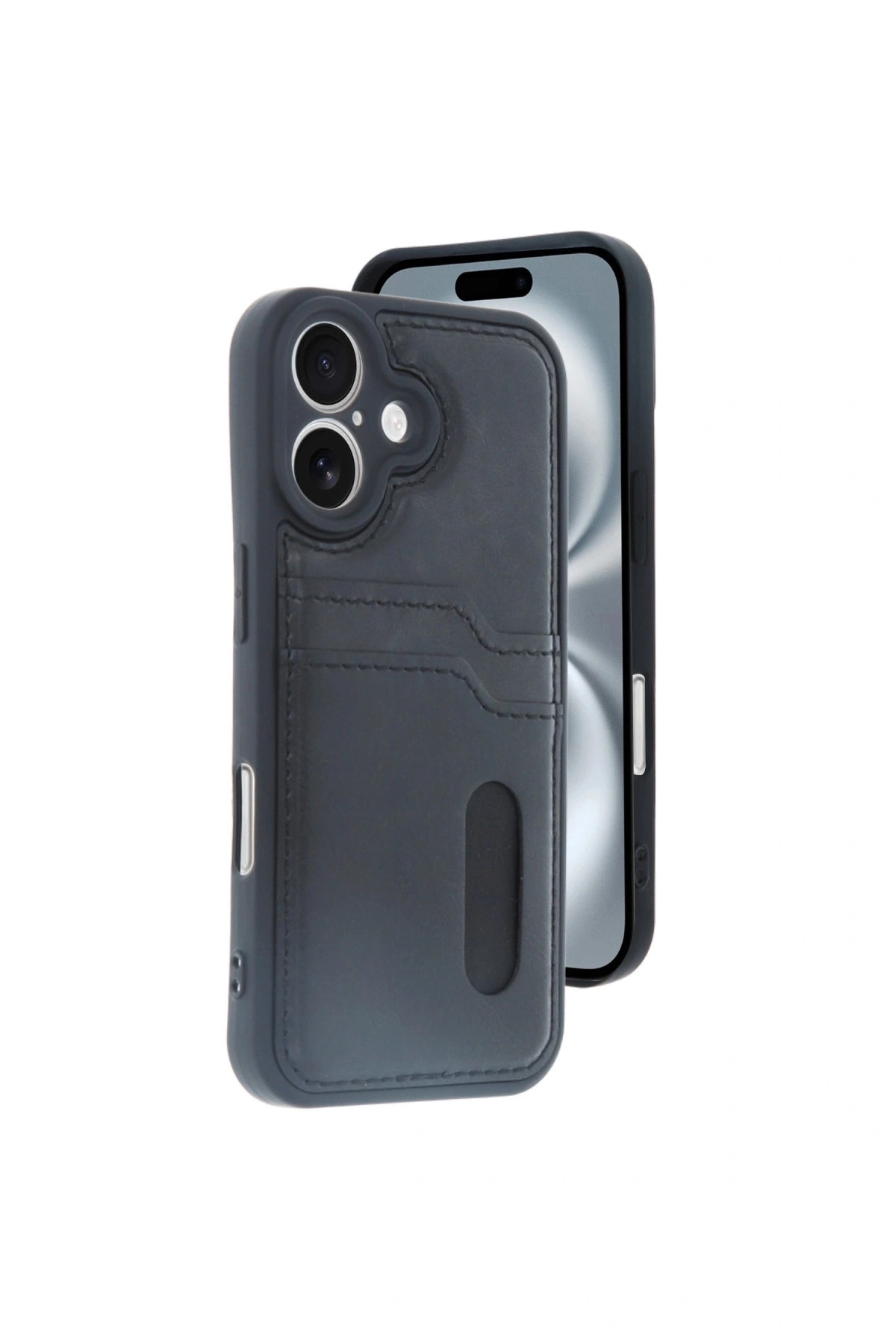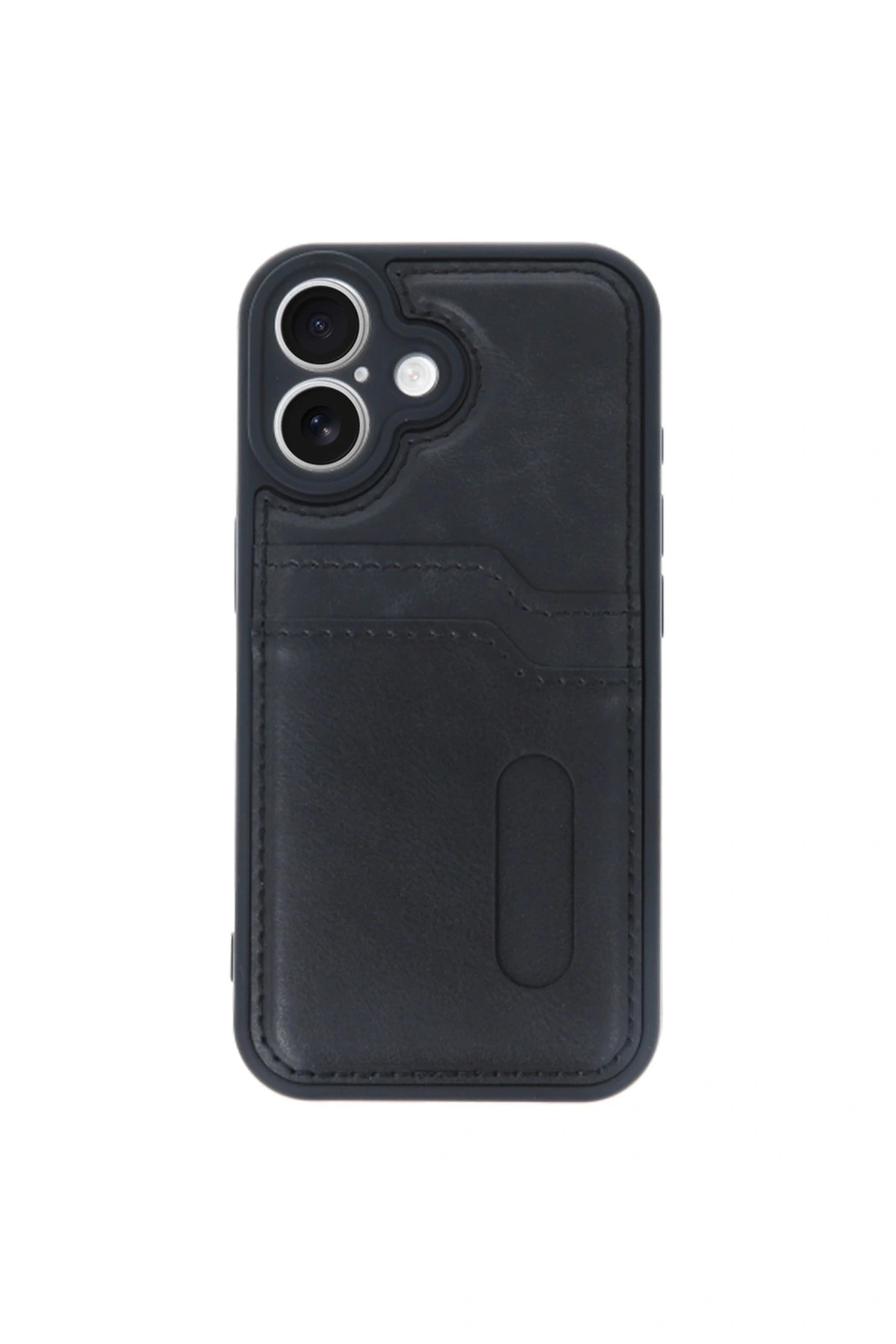 İphone 16 Kılıf Sara Kartvizitli Deri Kılıf - Siyah