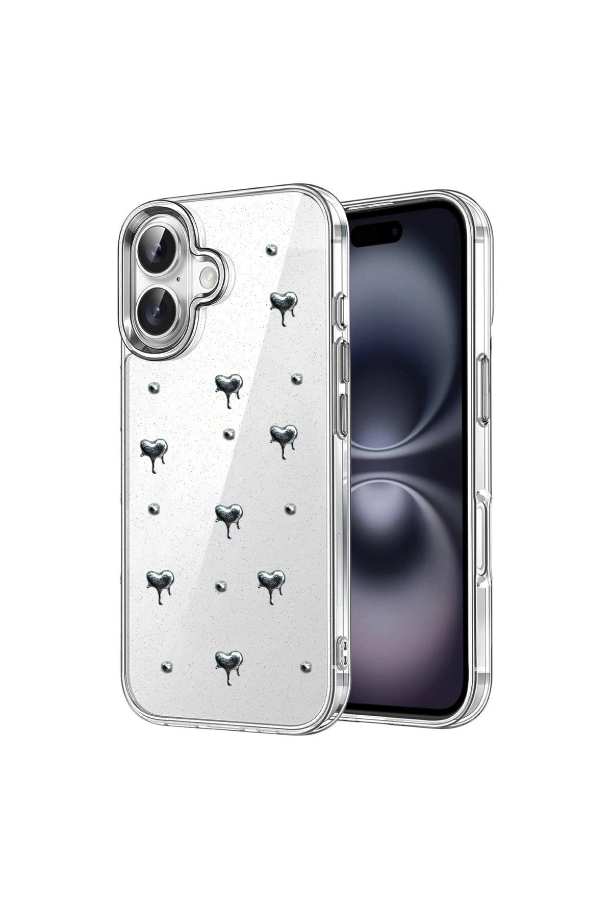 Fiyonk Desenli Kapak ✅ Zarafet ve Koruma Bir AradaFiyonk, yıldız, kelebek, lale, çiçek, kalp ve gül gibi zarif detaylarla süslenmiş bu kapak simli, şeffaf tasarımıyla estetik ve korumayı bir araya getiriyor.; Telefonunuzu yalnızca dış etkenlerden korumakla kalmaz, aynı zamanda ona göz alıcı bir stil kazandırır.; Günlük kullanımda dikkat çeken tasarımı sayesinde cihazınızın şıklığı öne çıkar.; ✅ Üstün Darbe KorumasıEsnek kenar yapısı ve dayanıklı malzemesiyle telefonunuzu darbelerden ve düşmelerden etkili bir şekilde korur.; Simli şeffaf yüzey, hem sağlamlık hem de görselliği bir arada sunarak cihazınızın görünümünü sergilemeye devam eder.; ✅ Konforlu ve Pratik Kullanımİnce ve hafif tasarımıyla telefonunuzu kalınlaştırmadan yüksek koruma sağlar.; Tüm tuşlar, bağlantı noktaları ve kamera çıkıntılarıyla tam uyumludur.; Kaymaz yüzeyi sayesinde elde daha güvenli bir tutuş sunar böylece günlük kullanımda rahatlık ve konfor sağlar.