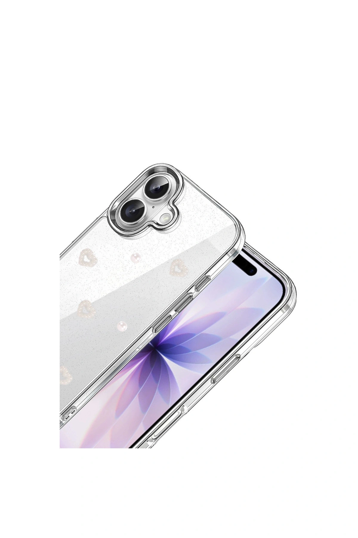 Fiyonk Desenli Kapak ✅ Zarafet ve Koruma Bir AradaFiyonk, yıldız, kelebek, lale, çiçek, kalp ve gül gibi zarif detaylarla süslenmiş bu kapak simli, şeffaf tasarımıyla estetik ve korumayı bir araya getiriyor.; Telefonunuzu yalnızca dış etkenlerden korumakla kalmaz, aynı zamanda ona göz alıcı bir stil kazandırır.; Günlük kullanımda dikkat çeken tasarımı sayesinde cihazınızın şıklığı öne çıkar.; ✅ Üstün Darbe KorumasıEsnek kenar yapısı ve dayanıklı malzemesiyle telefonunuzu darbelerden ve düşmelerden etkili bir şekilde korur.; Simli şeffaf yüzey, hem sağlamlık hem de görselliği bir arada sunarak cihazınızın görünümünü sergilemeye devam eder.; ✅ Konforlu ve Pratik Kullanımİnce ve hafif tasarımıyla telefonunuzu kalınlaştırmadan yüksek koruma sağlar.; Tüm tuşlar, bağlantı noktaları ve kamera çıkıntılarıyla tam uyumludur.; Kaymaz yüzeyi sayesinde elde daha güvenli bir tutuş sunar böylece günlük kullanımda rahatlık ve konfor sağlar.