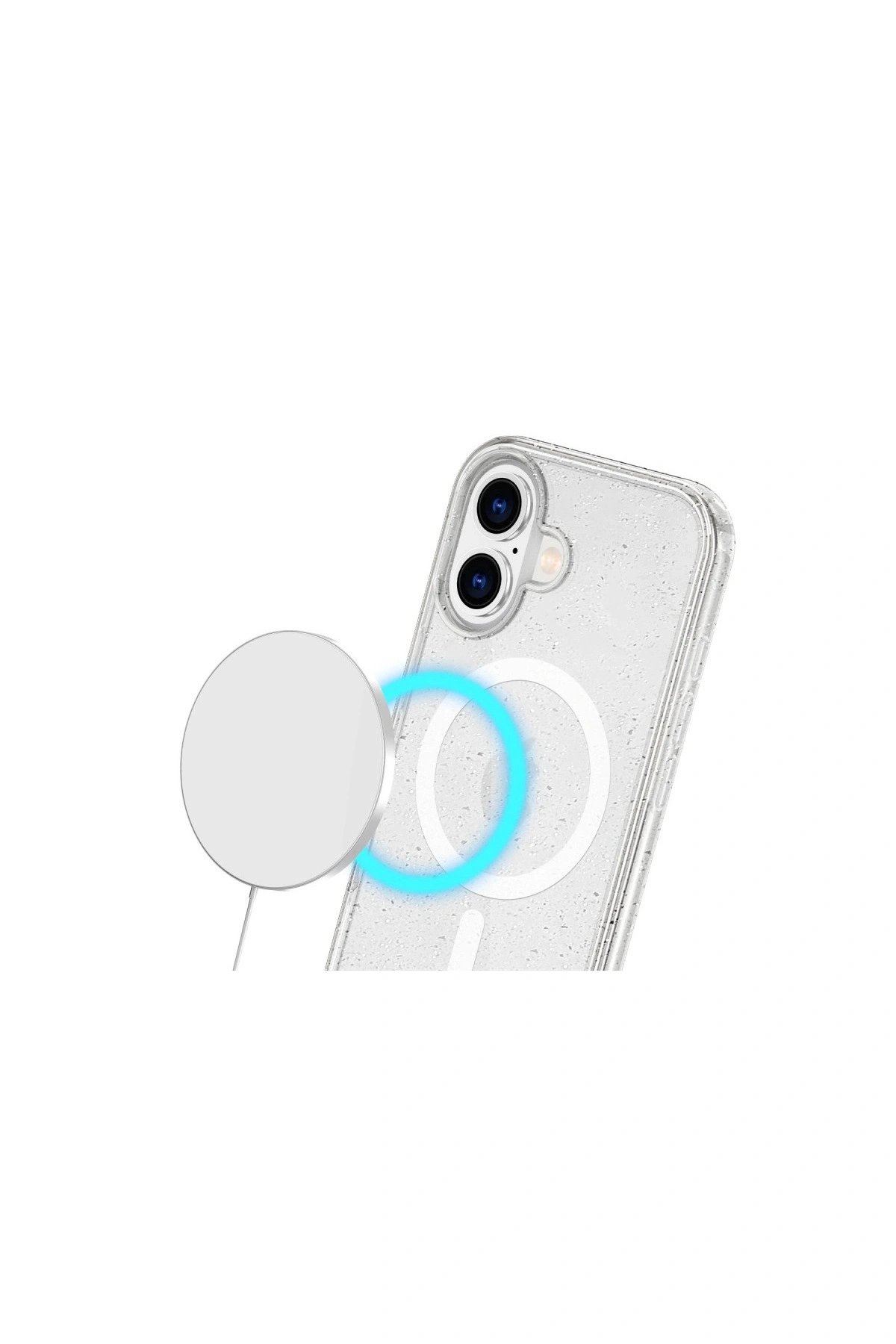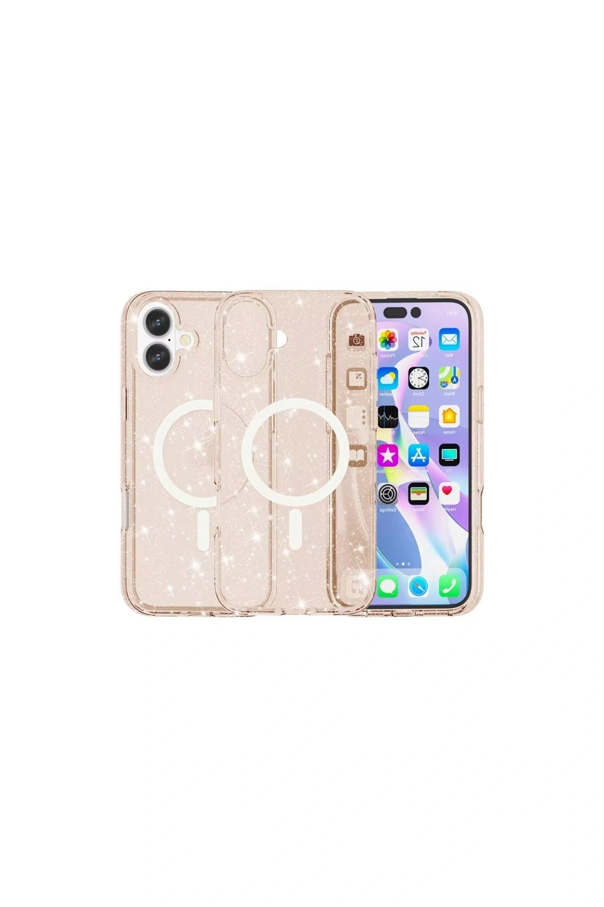 Magsafe KapakParlak ve Şık Tasarım:Glow MagSafe Kapak, telefonunuzu her açıdan öne çıkaran parlak ve şık bir tasarıma sahiptir.; Simli arka planı, ışık altında parlayarak cihazınıza göz alıcı bir görünüm kazandırır.; MagSafe Uyumlu:Kapak, MagSafe aksesuarları ve şarj cihazları ile tam uyumludur.; Dayanıklı ve Koruyucu Malzeme:Glow MagSafe Kapak, cihazınızı günlük hayatta oluşabilecek darbelere, çizilmelere ve düşmelere karşı korumak için yüksek kaliteli malzemelerden üretilmiştir.; Yükseltilmiş Kenar Koruması:Kapak, telefonunuzun ekranını ve kamerasını koruma altına almak için yükseltilmiş kenarlara sahiptir.; Kolay Erişim ve Düğme Hassasiyeti:Kapak, telefonunuzun tüm portlarına, düğmelerine ve işlevlerine tam erişim imkanı sunar.