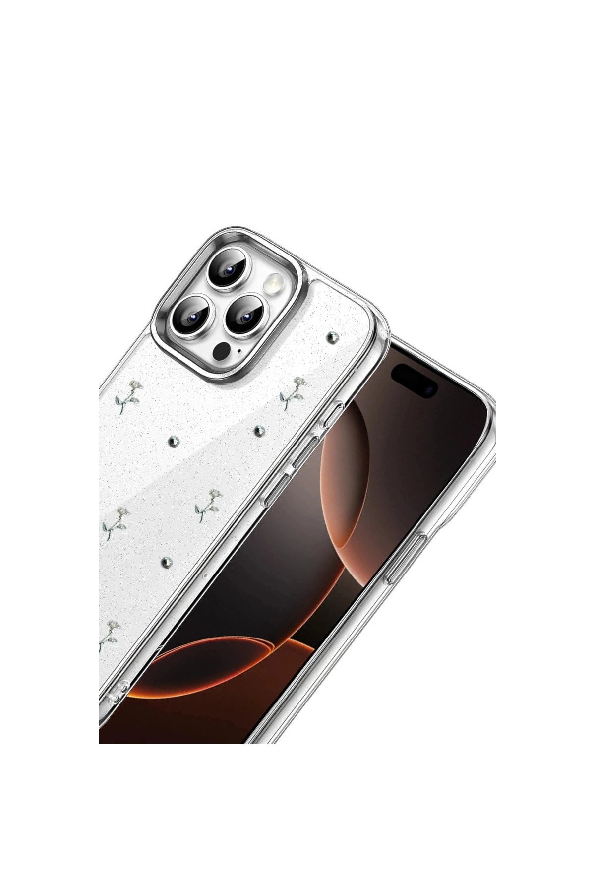 Fiyonk Desenli Kapak ✅ Zarafet ve Koruma Bir AradaFiyonk, yıldız, kelebek, lale, çiçek, kalp ve gül gibi zarif detaylarla süslenmiş bu kapak simli, şeffaf tasarımıyla estetik ve korumayı bir araya getiriyor.; Telefonunuzu yalnızca dış etkenlerden korumakla kalmaz, aynı zamanda ona göz alıcı bir stil kazandırır.; Günlük kullanımda dikkat çeken tasarımı sayesinde cihazınızın şıklığı öne çıkar.; ✅ Üstün Darbe KorumasıEsnek kenar yapısı ve dayanıklı malzemesiyle telefonunuzu darbelerden ve düşmelerden etkili bir şekilde korur.; Simli şeffaf yüzey, hem sağlamlık hem de görselliği bir arada sunarak cihazınızın görünümünü sergilemeye devam eder.; ✅ Konforlu ve Pratik Kullanımİnce ve hafif tasarımıyla telefonunuzu kalınlaştırmadan yüksek koruma sağlar.; Tüm tuşlar, bağlantı noktaları ve kamera çıkıntılarıyla tam uyumludur.; Kaymaz yüzeyi sayesinde elde daha güvenli bir tutuş sunar böylece günlük kullanımda rahatlık ve konfor sağlar.