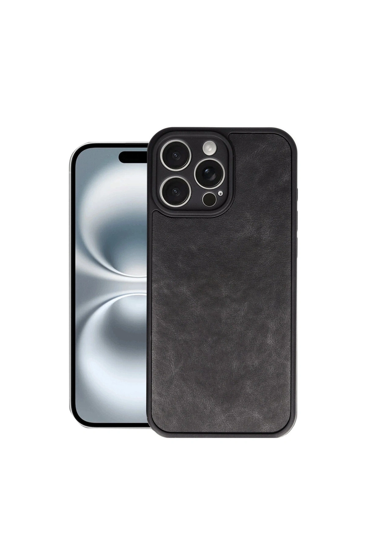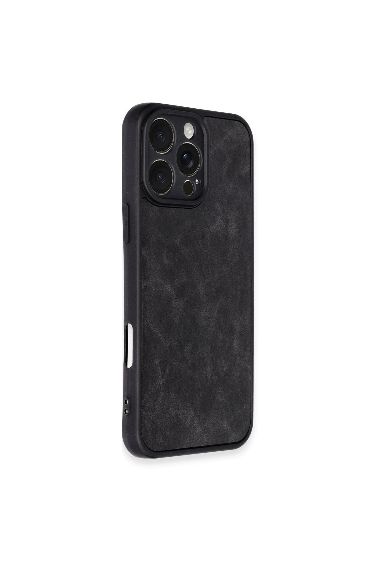 İphone 16 Pro Kılıf Aras Deri Kapak - Siyah