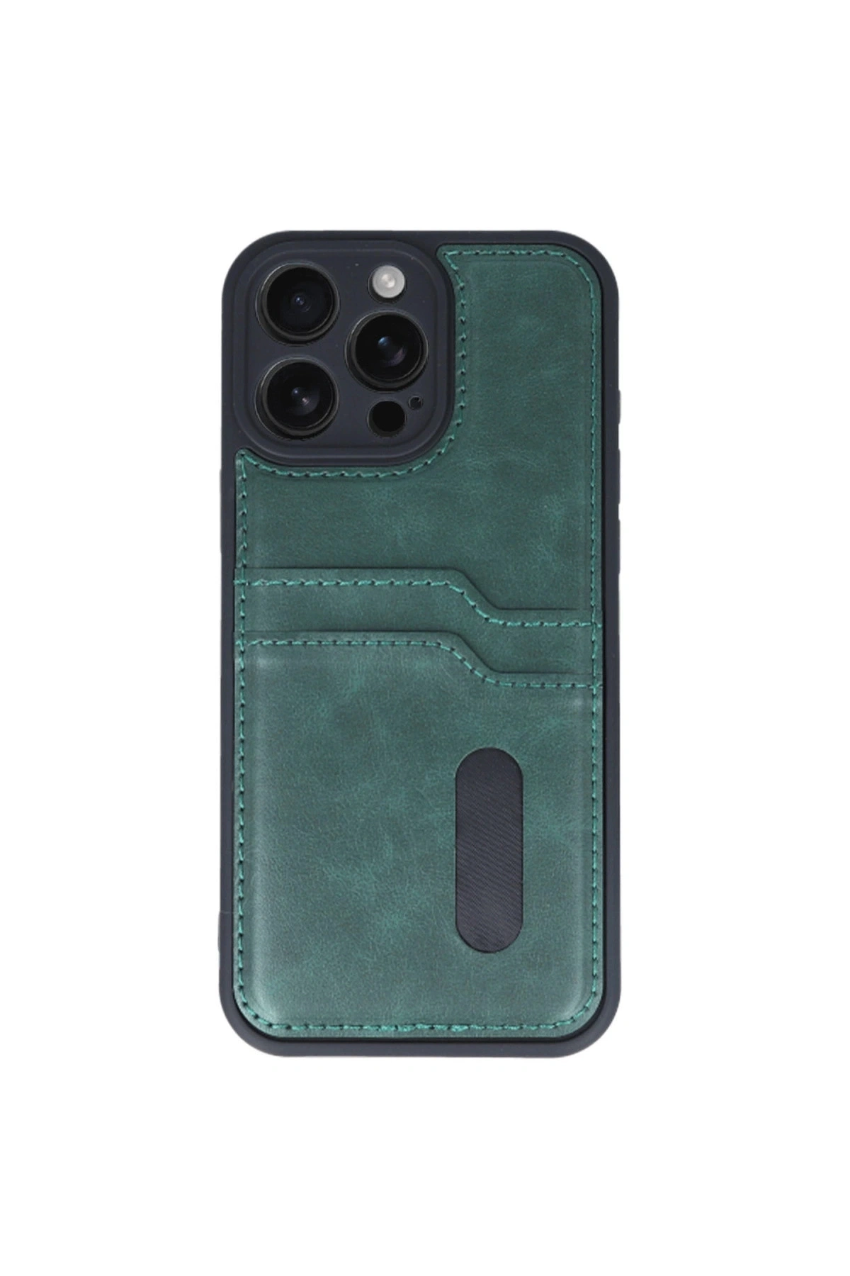 İphone 16 Pro Kılıf Sara Kartvizitli Deri Kılıf - Koyu Yeşil