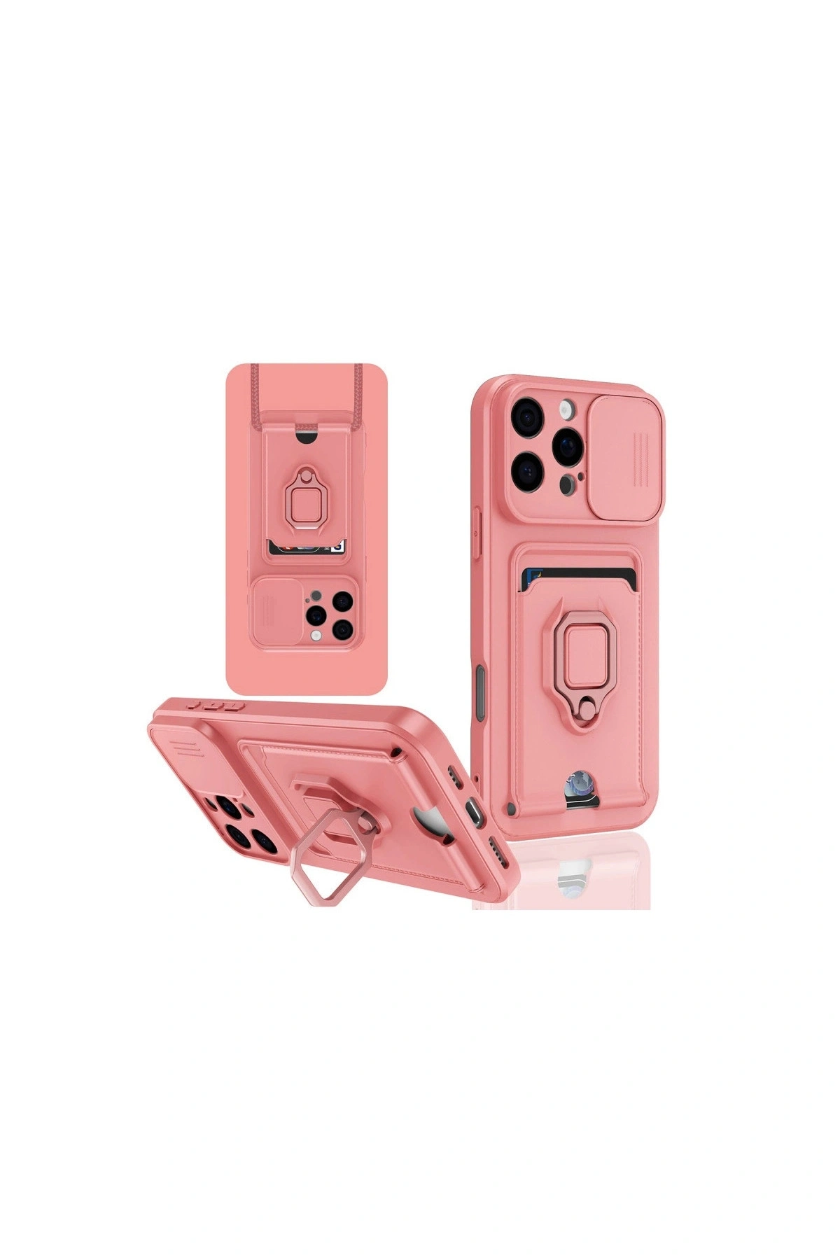İphone 16 Pro Kılıf Zuma Kartvizitli Yüzüklü Silikon - Pembe